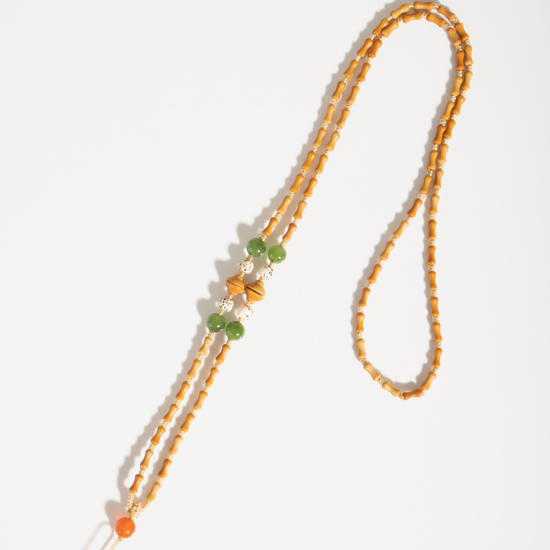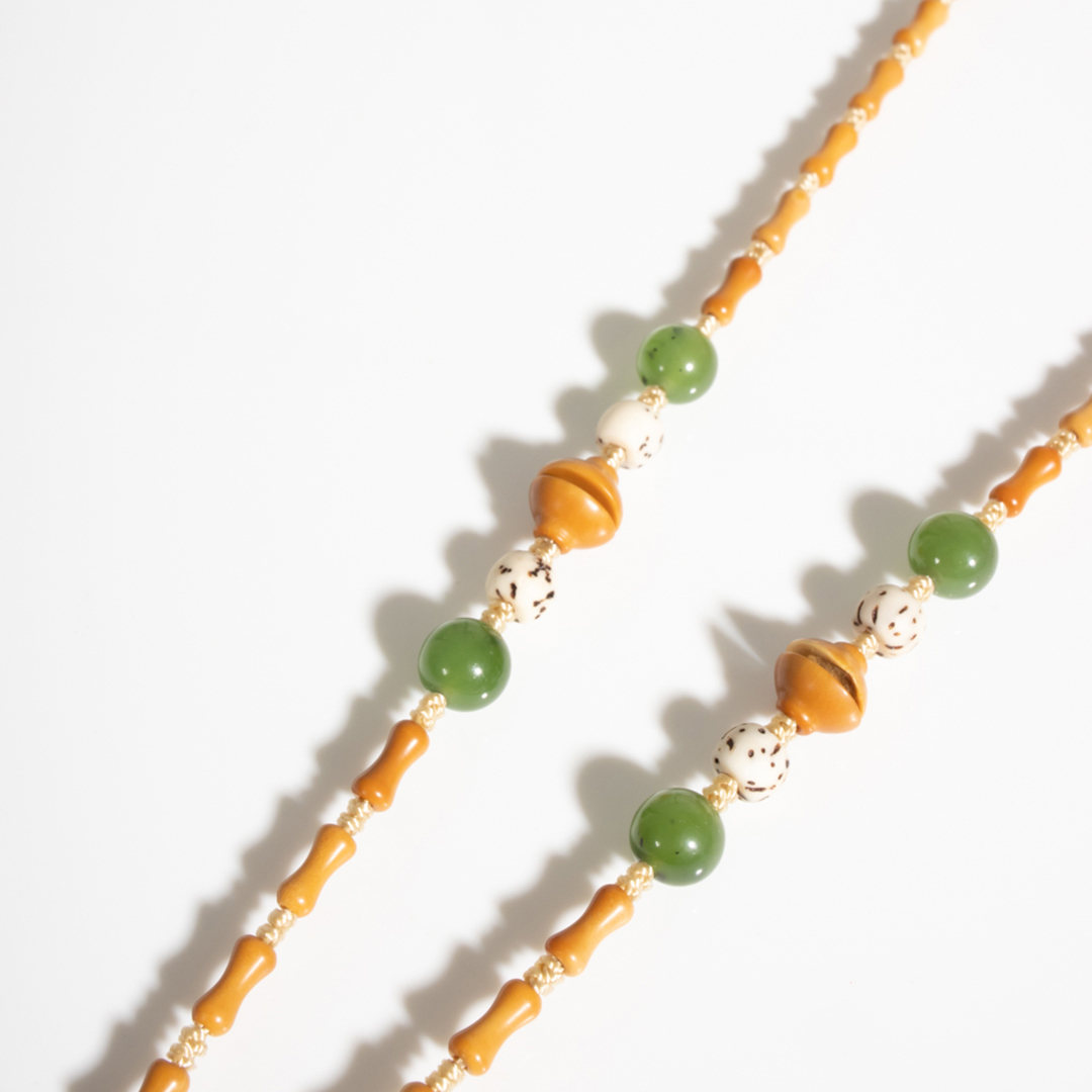 橄榄核和田玉碧玉星月菩提竹节珠链吊坠挂绳女6*2.5mm手工编绳
