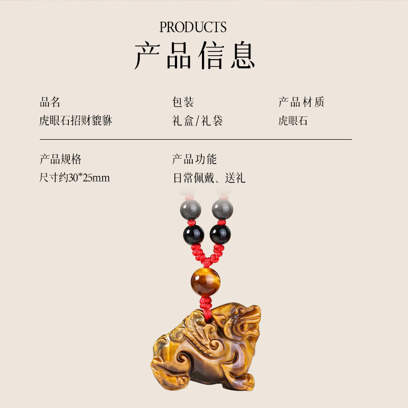 遇见普陀山黄虎眼石貔貅吊坠木化石霸王皮丘男女款挂件虎睛石项链