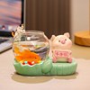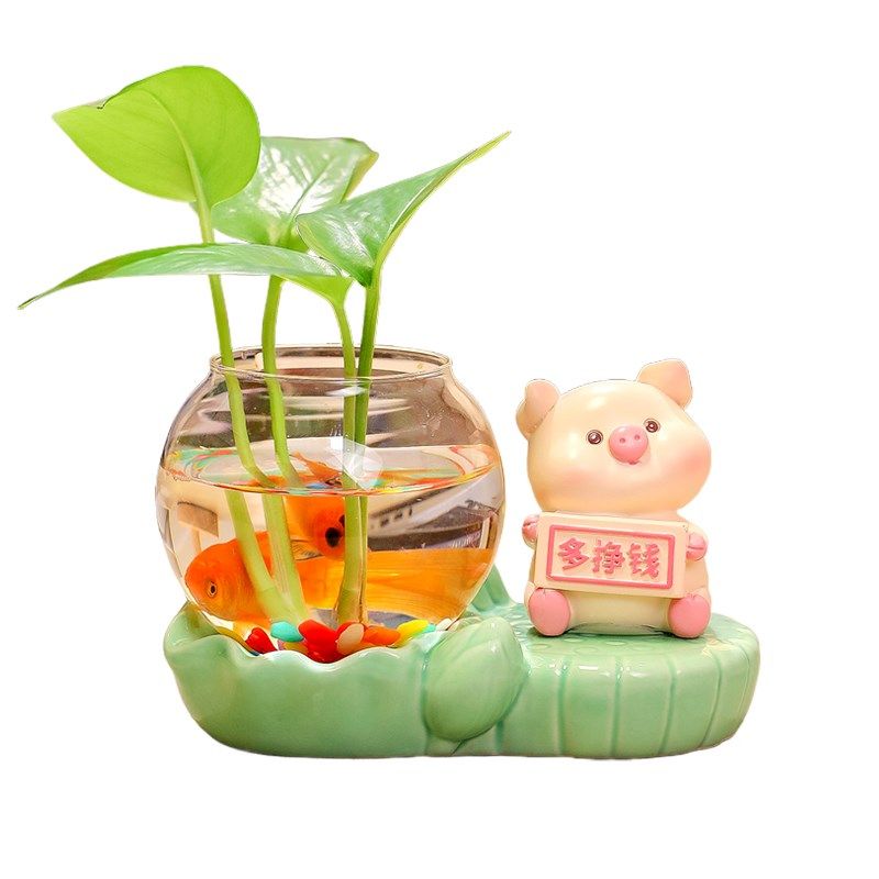 莫生气陶瓷底玻璃透明小金鱼缸摆件办公室工位桌面解压治愈系摆饰