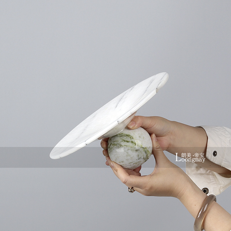 侘寂风大理石置物盘样板房客厅茶几餐桌高级感果盘家居装饰品摆件