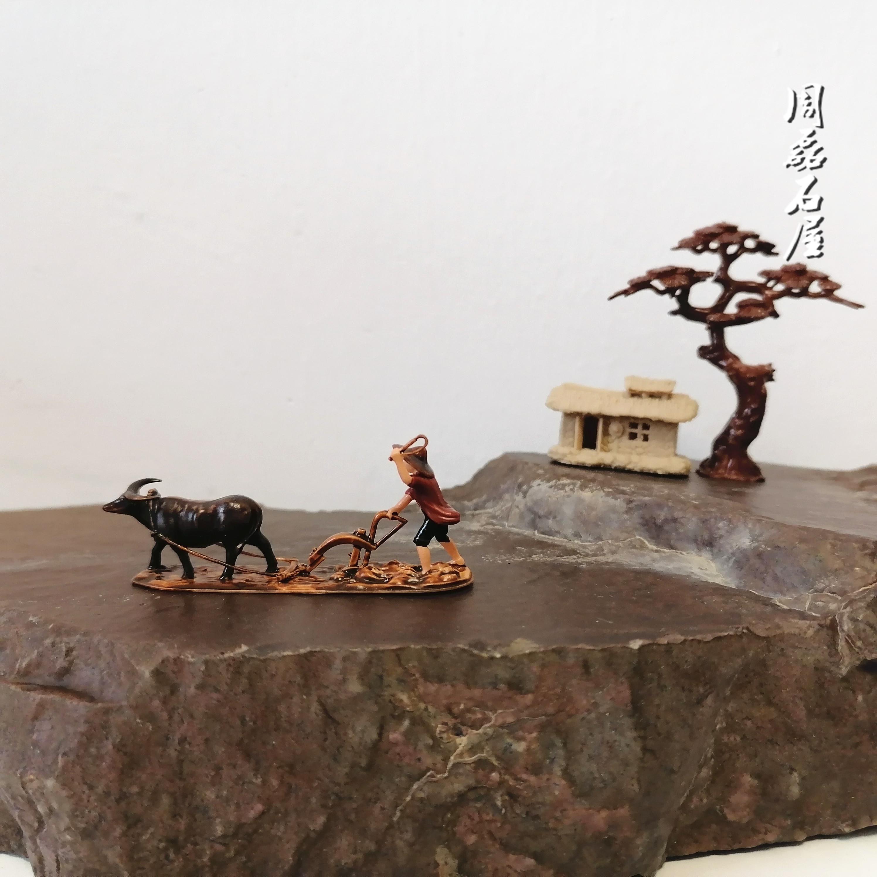 复古精品农夫犁地微景造景装饰奇石盆景假山枯山水鱼缸树脂小摆件