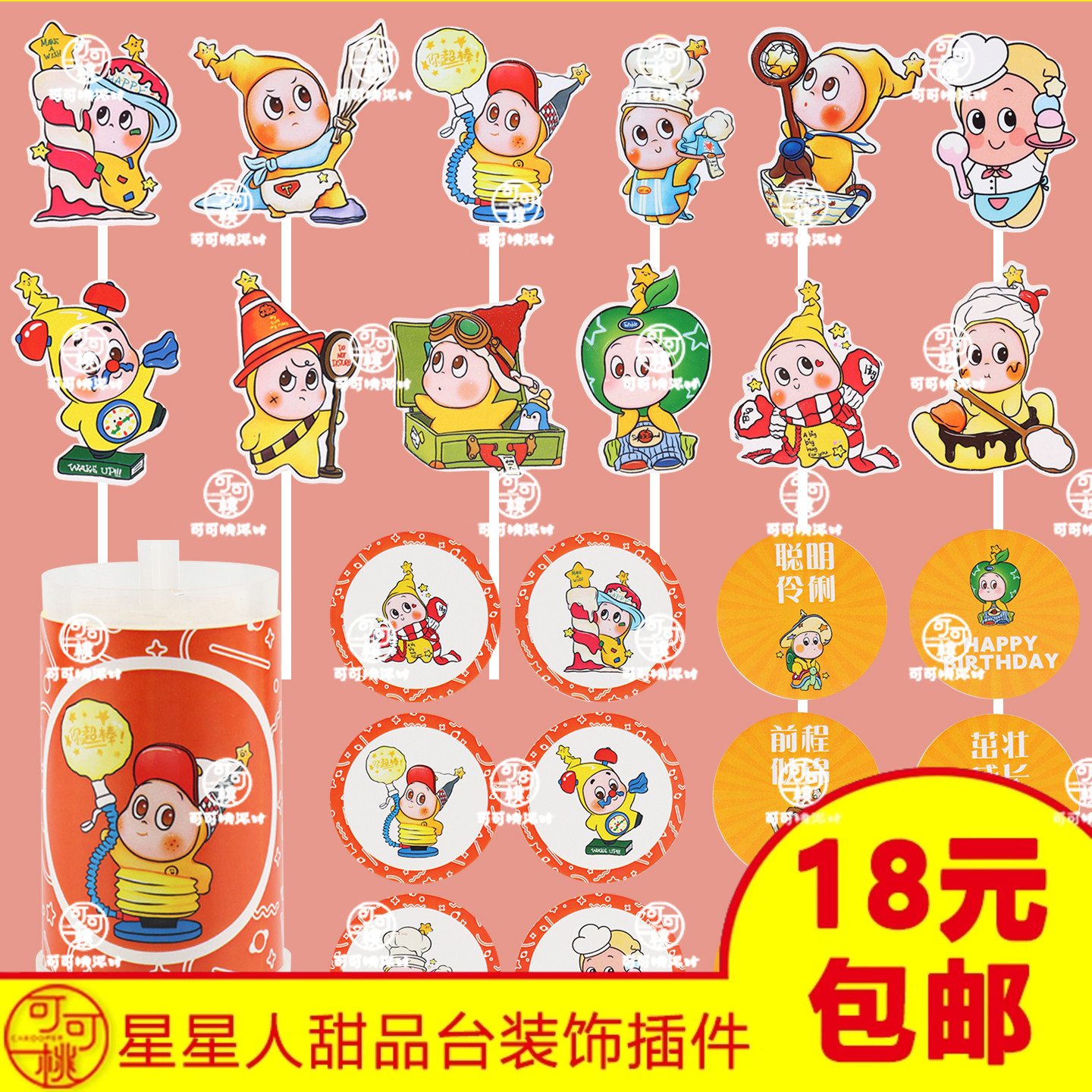 星星人主题生日甜品台装饰黄色系纸杯蛋糕卡通插件宝宝满月宴布置