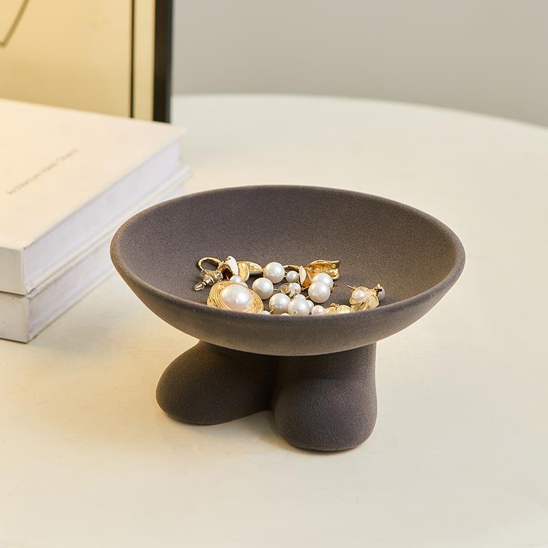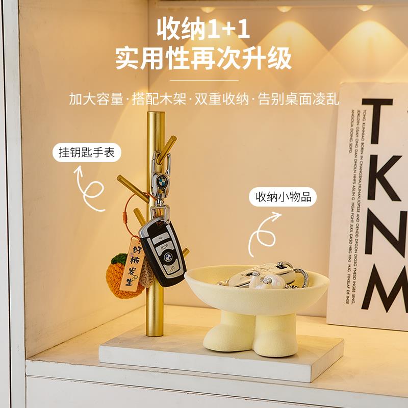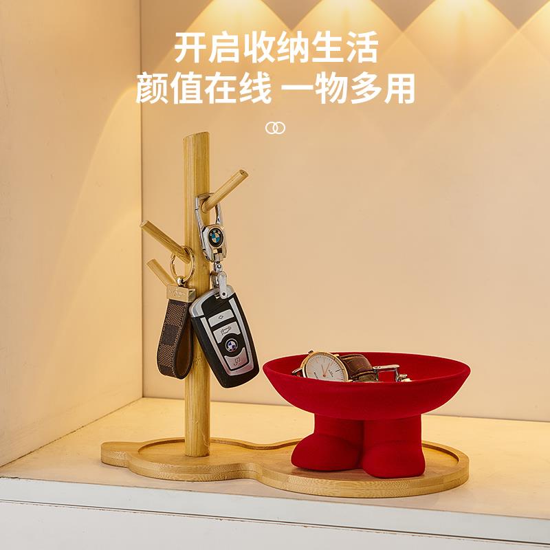 红色陶瓷轻奢鞋柜入户门玄关放钥匙托盘收纳装饰乔迁摆件新婚礼物