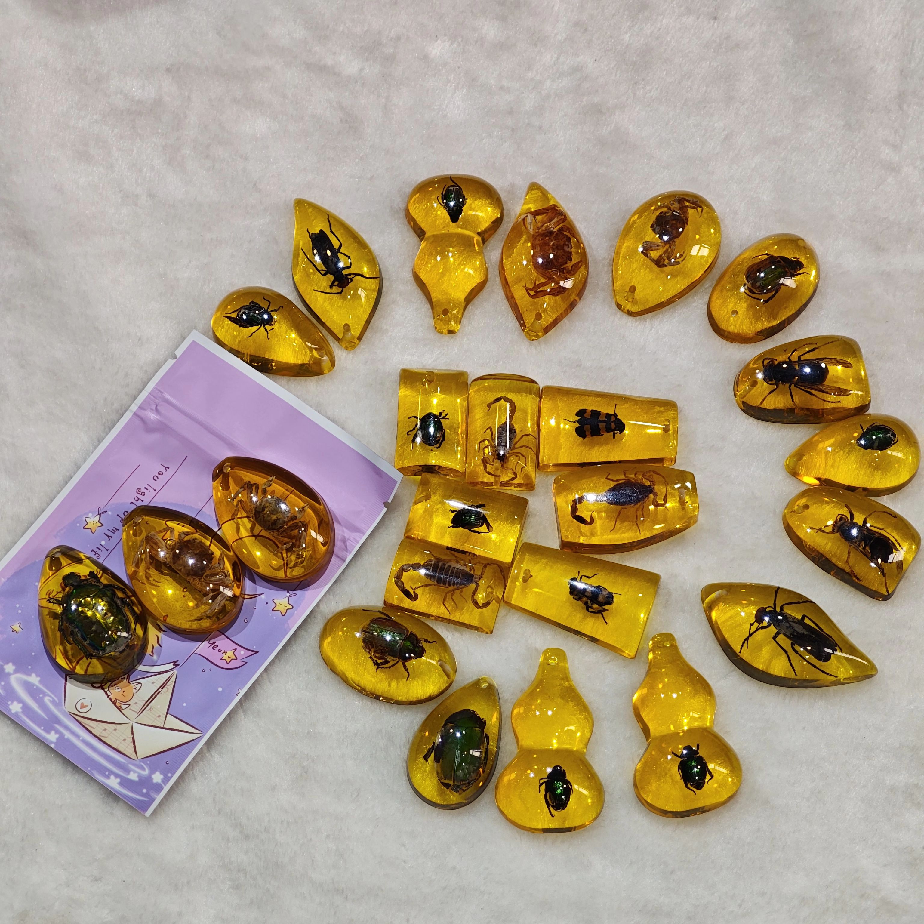 真昆虫琥珀标本儿童挖掘考古盲盒虫珀配件学生教学挂件六一礼物