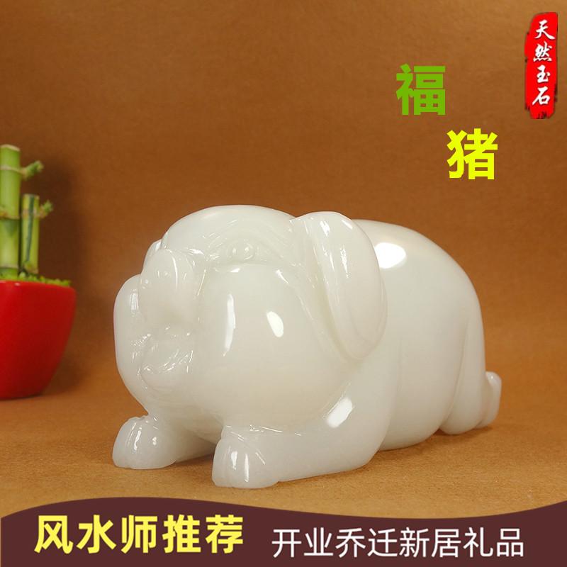 天然阿富汗白玉猪摆件十二生肖福猪客厅玄关办公桌玉石猪装饰摆件