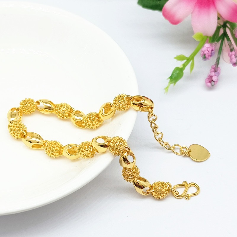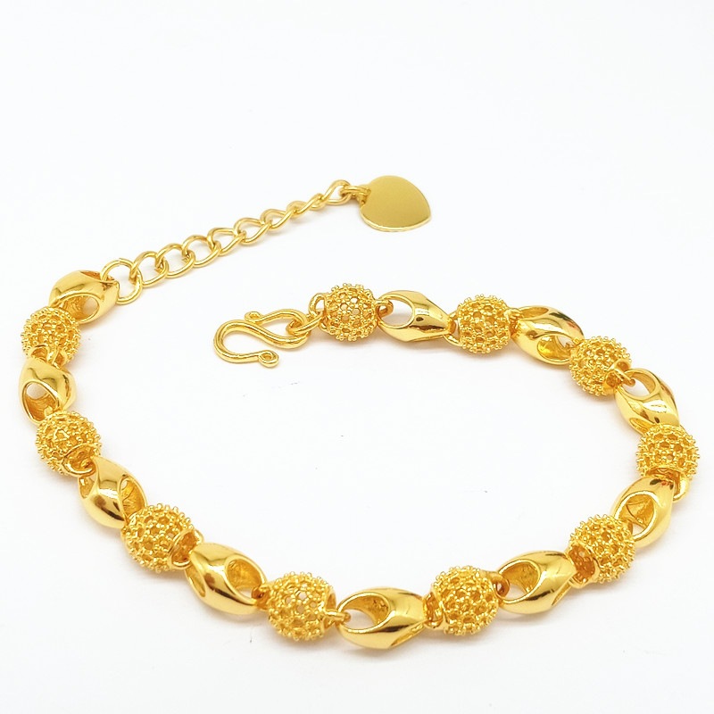 香港正品免税玲珑手链转运珠时尚镂空爱心沙金手链女不掉色仿999