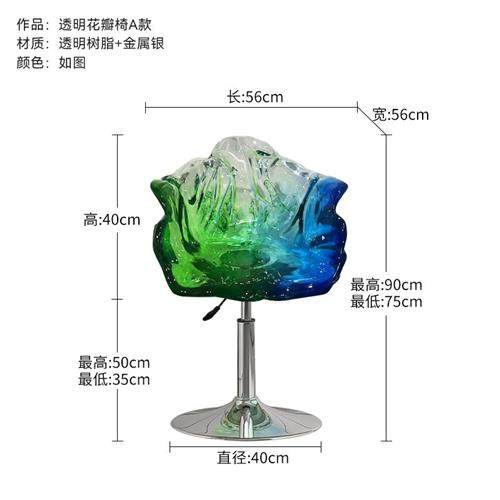 抽象透明树脂花瓣椅子吧台旋转凳子室内酒店客厅软装抽象雕塑摆件