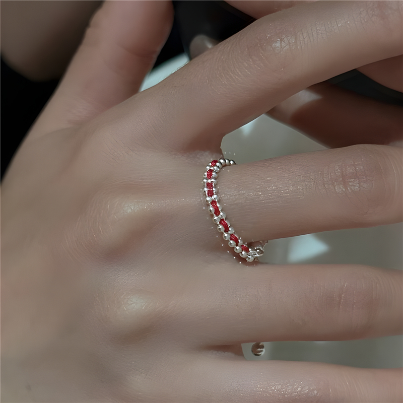 梵灵原创小众设计师款编织调节链戒指S925纯银圣诞新年红送礼物