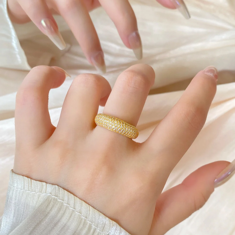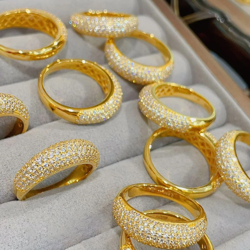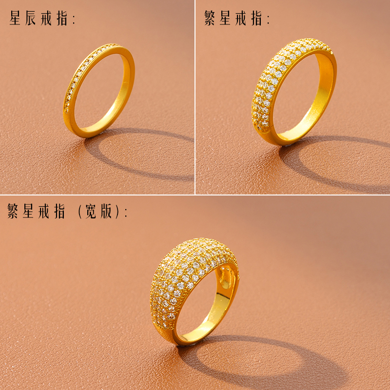 黄金色满钻繁星戒指沙金满天星镶嵌钻圈金店同款指环送女友