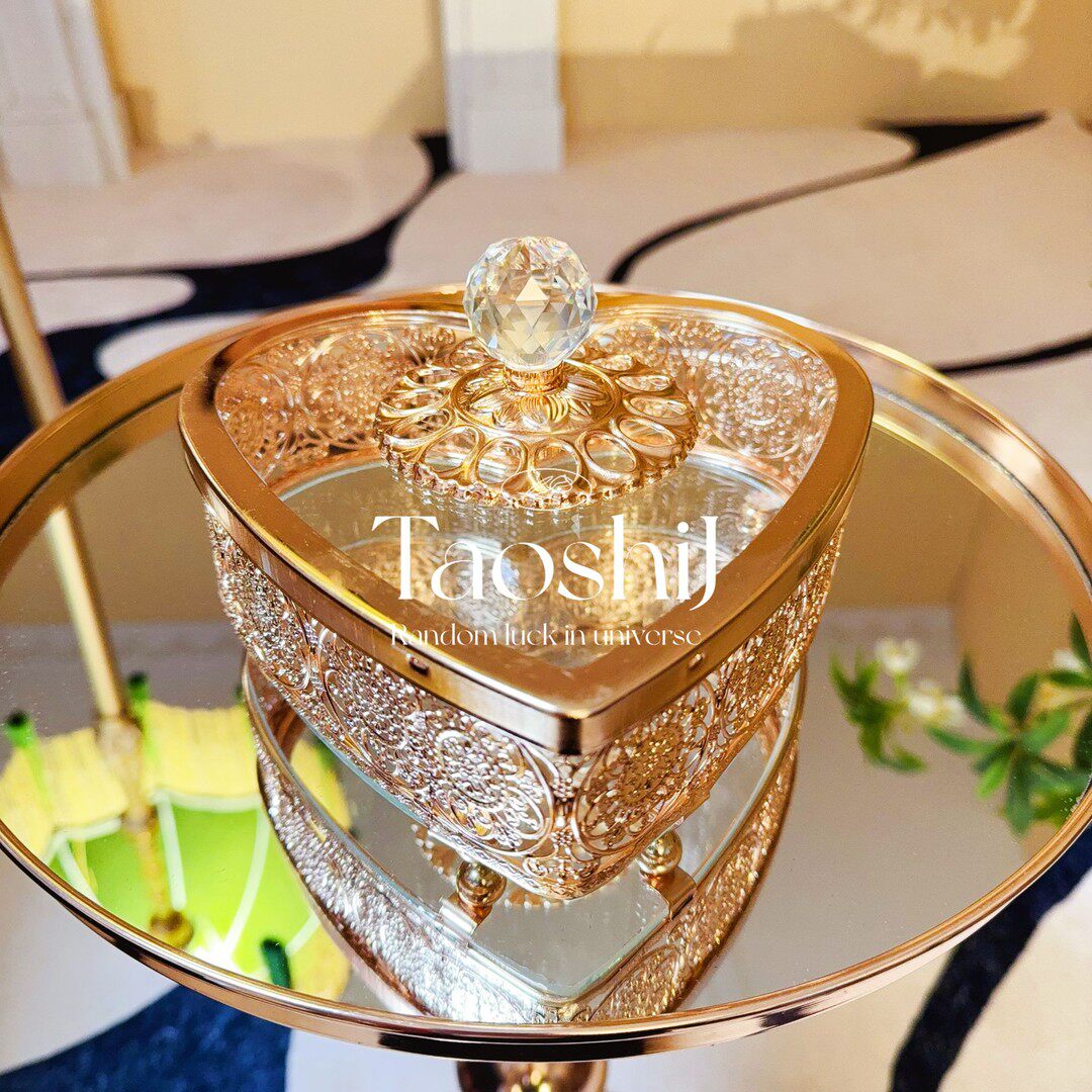 欧式干果盒时尚高档心形果盘精美金色花纹轻奢客厅收纳果盒