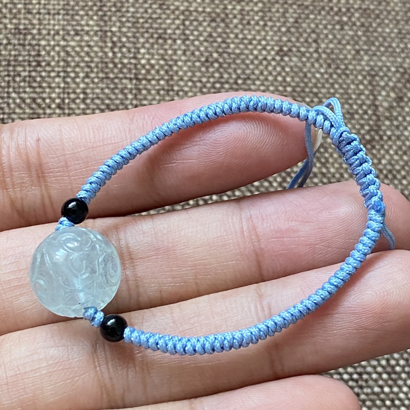 新款原创12mm天然海蓝宝回纹珠手链手编绳手串雕刻蓝色珠子可调节
