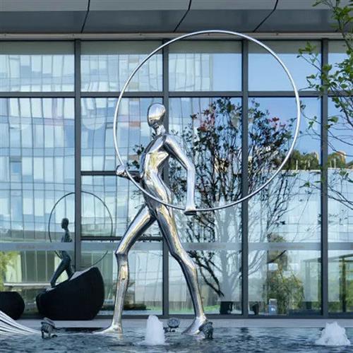 创意不锈钢抽象艺术人物雕塑玻璃钢金属跳舞镜面人形人像创意摆件