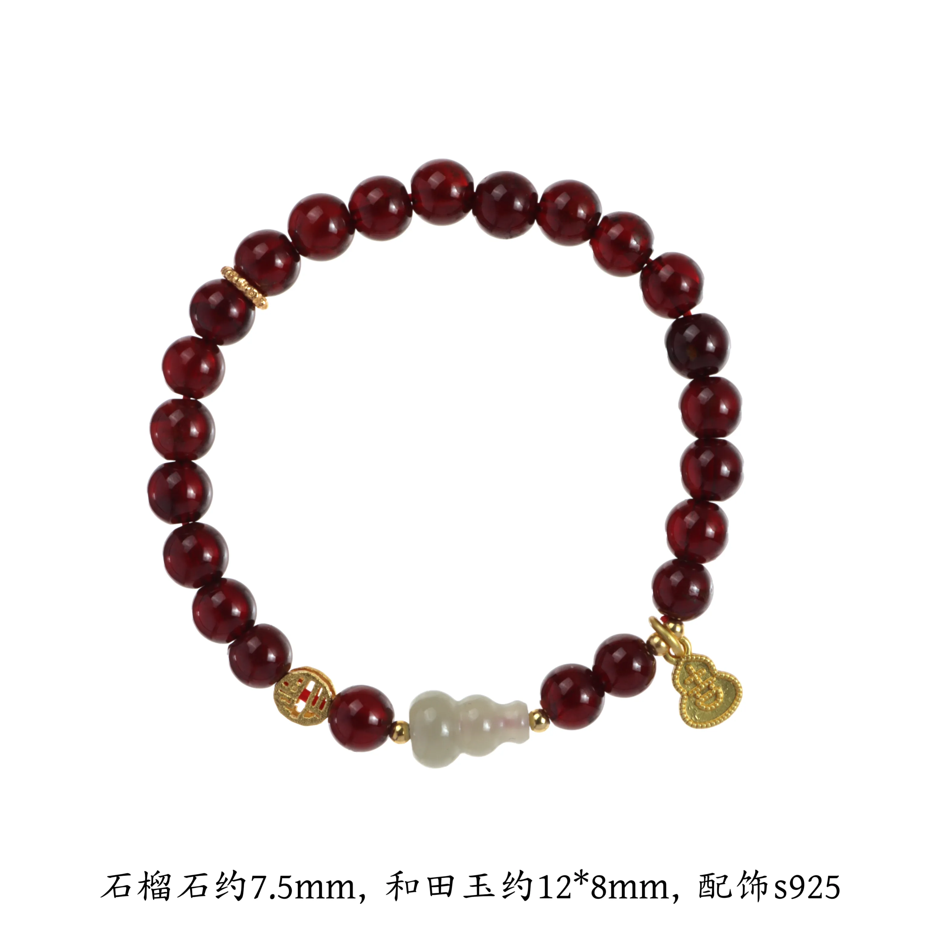 凌初LINGC 石榴 新中式文玩石榴石水晶手串 · 和田玉串珠手链
