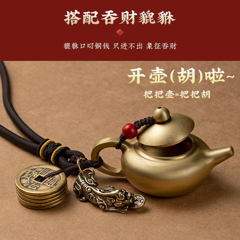 黄铜貔貅五帝钱把把壶手把件赢钱神器打麻将把把胡文玩挂件摆件礼