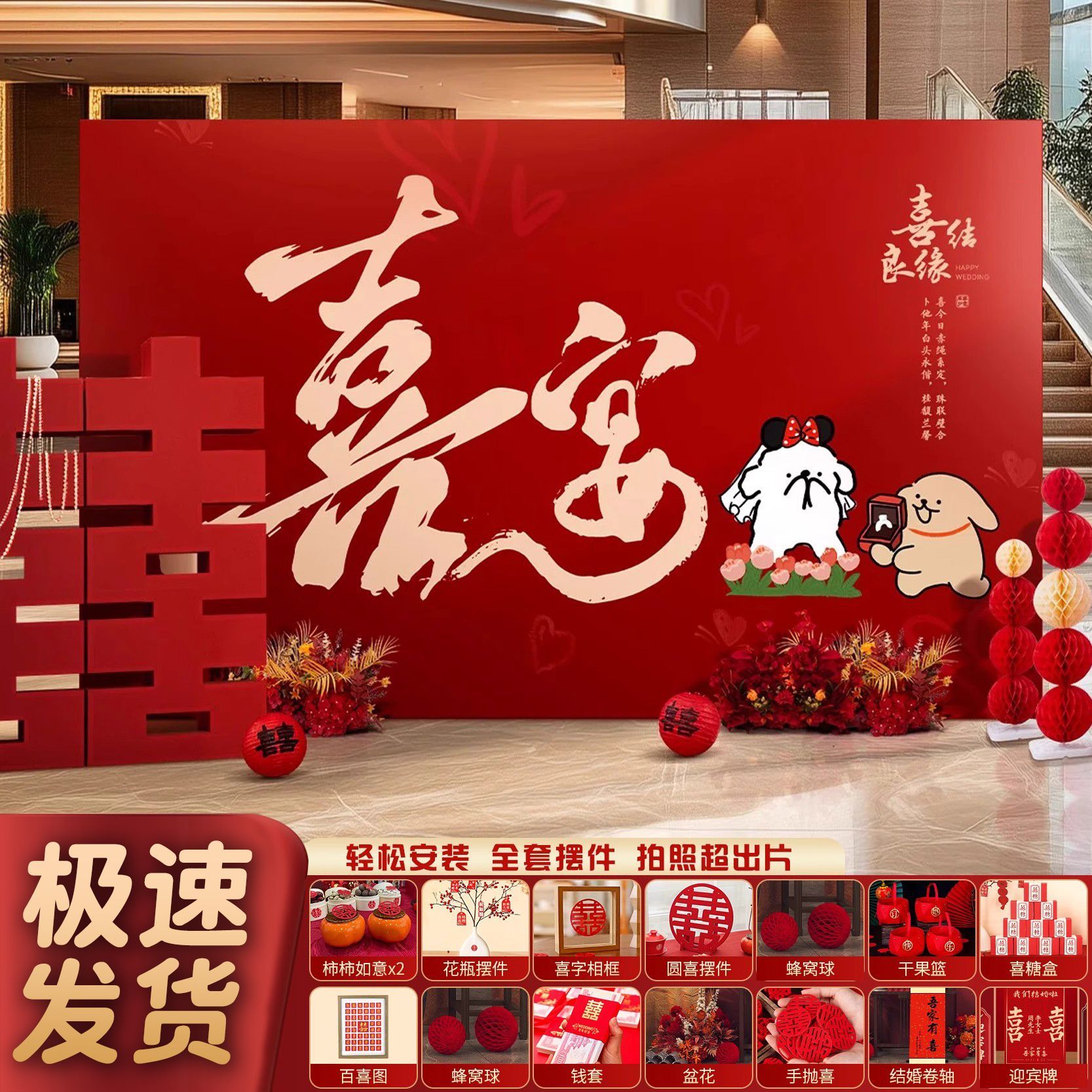 结婚kt板定制背景板婚礼留影区布置婚房迎宾场景酒店装饰摆件拍照