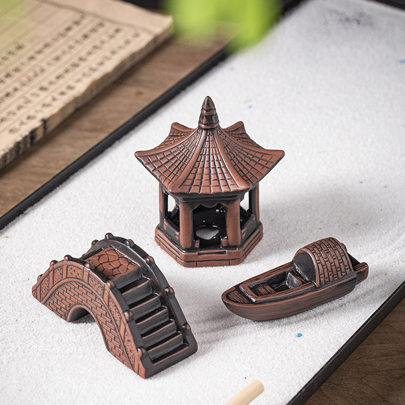 古风陶瓷六角小亭子古桥小船微景观小摆件盆栽造景假山鱼缸装饰品