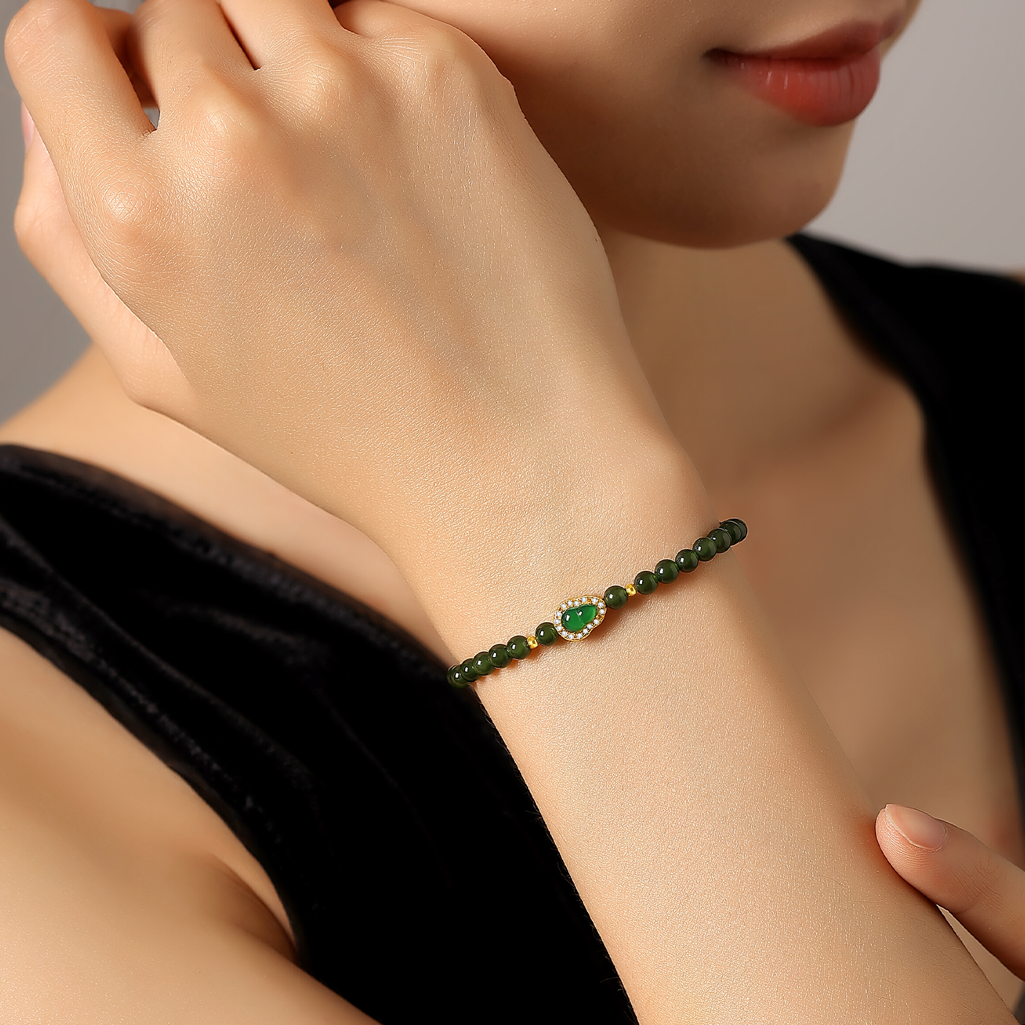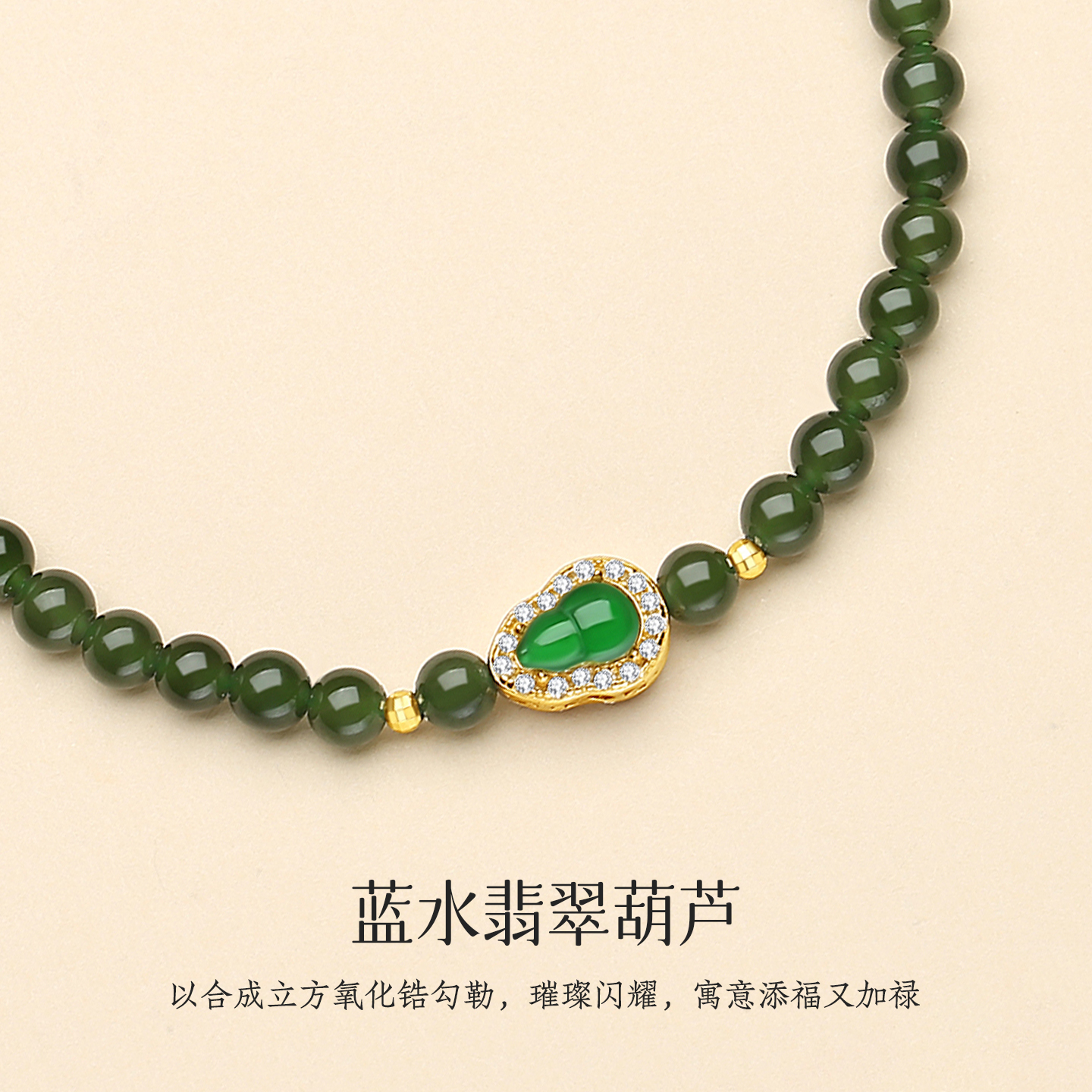 天然俄料碧玉小米珠菠菜绿手串女蓝水翡翠葫芦手链新中式精致手饰