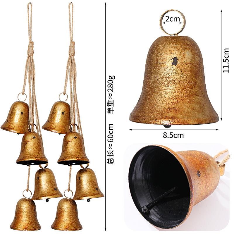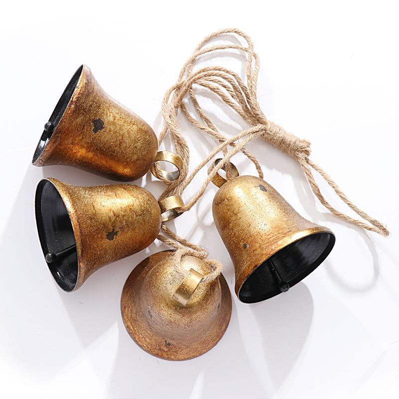 爆款热卖复古麻绳铃铛挂件圣诞花环门挂喇叭铃铛节庆铁艺大铃铛串