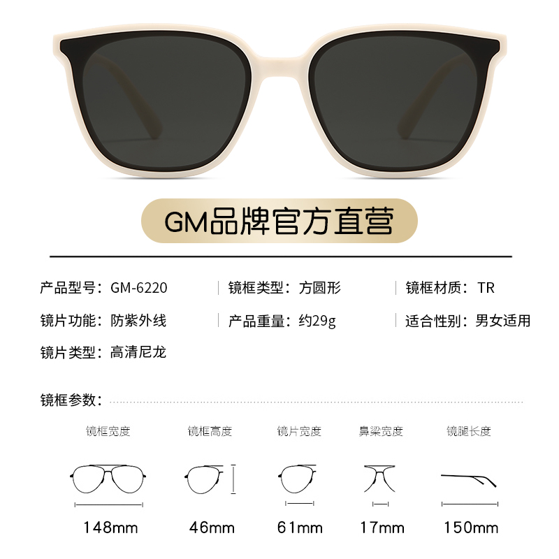【GM正品】白框墨镜女高级感太阳眼镜男开车专用防紫外线2025新款