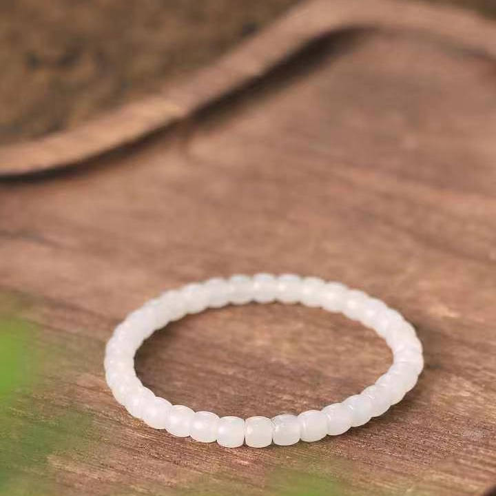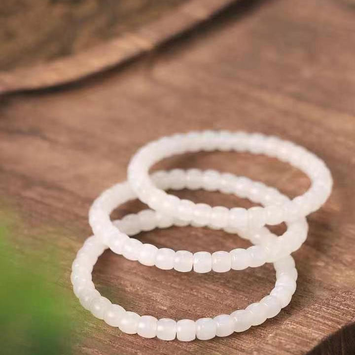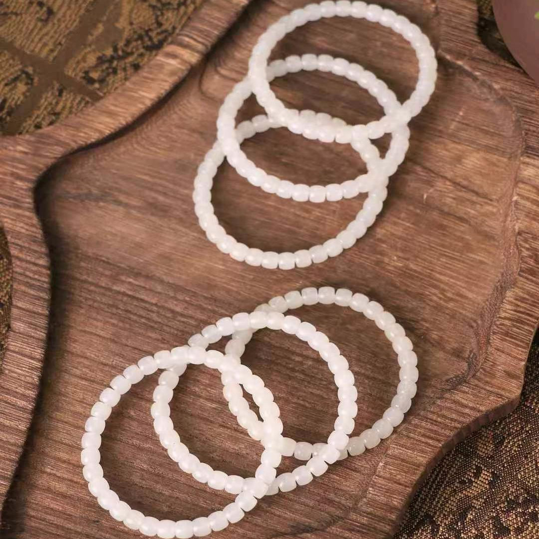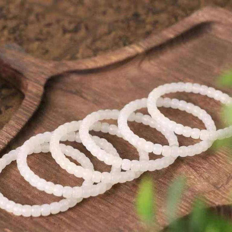 天然新疆和田玉男士手串羊脂白玉女款老型珠手链情侣款玉石手链