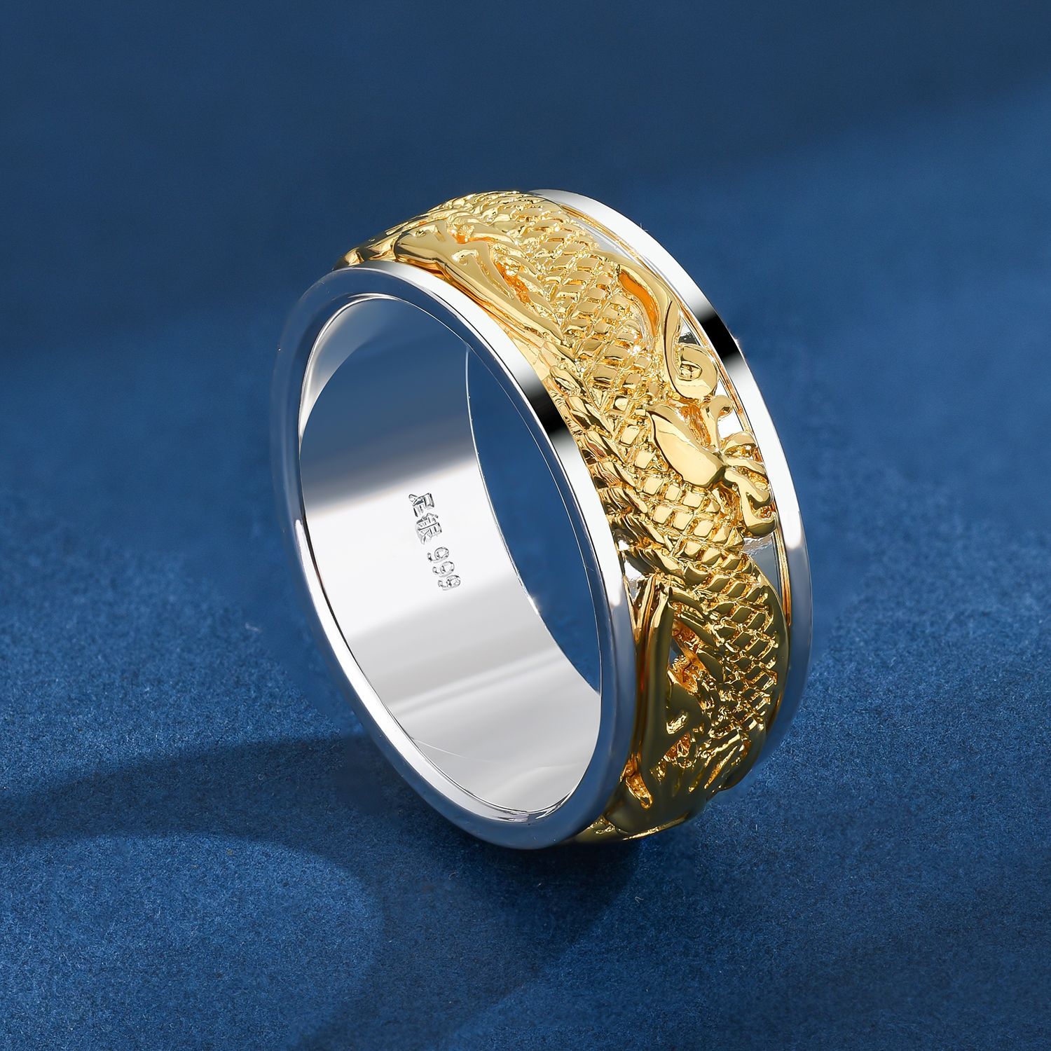 可转动s999纯银戒指吉祥盘龙可旋转个性男士中国风霸气食指环尾戒