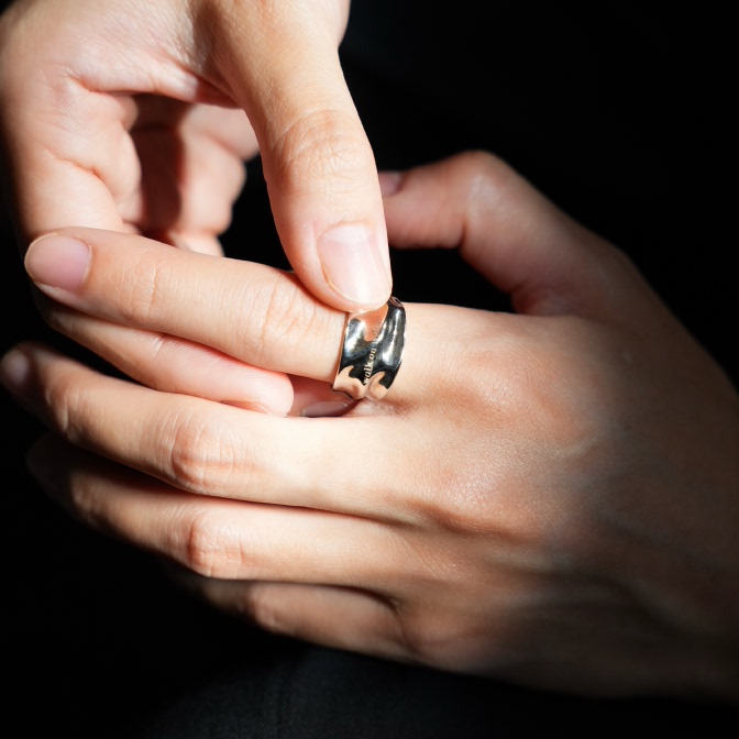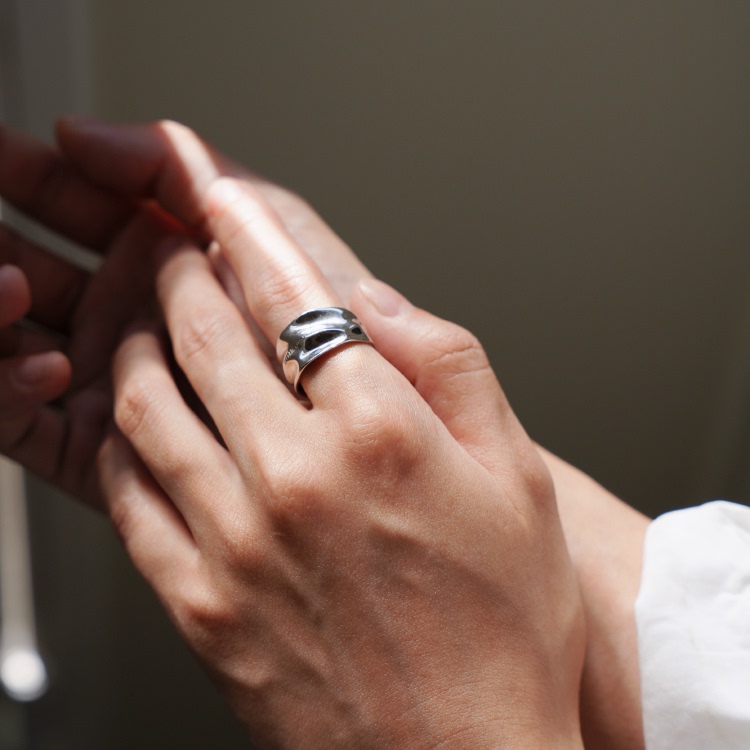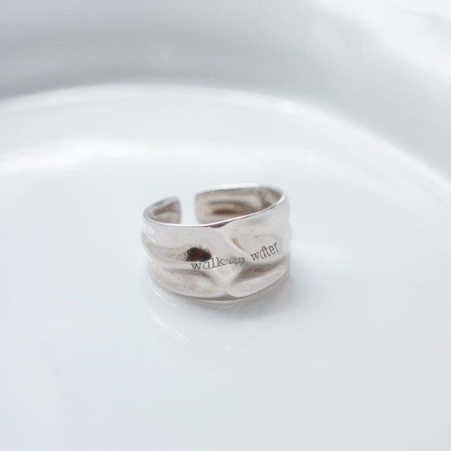 Heymen黑门 walk on water 行在水面 原创设计波纹刻字925银戒指
