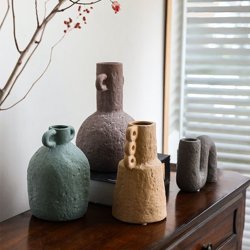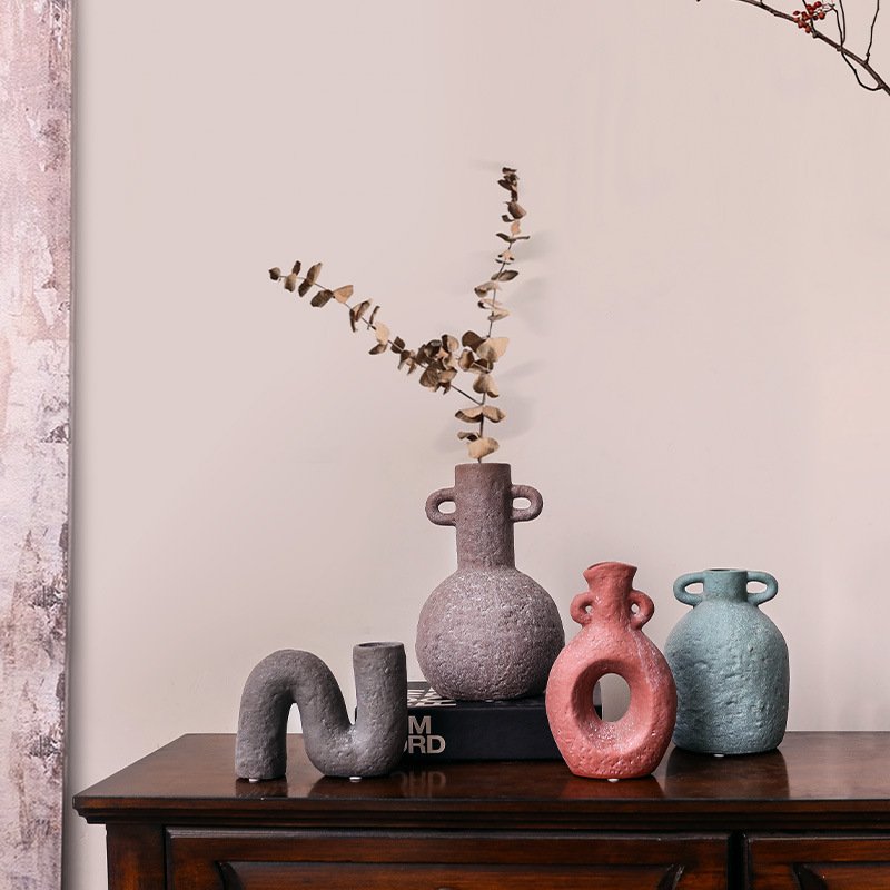 北欧创意复古陶瓷花瓶摆件玄关客厅家居简约设计师插花艺术装饰品
