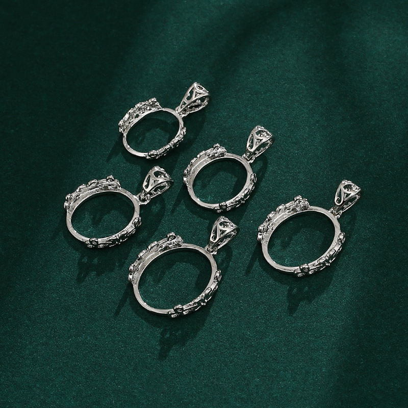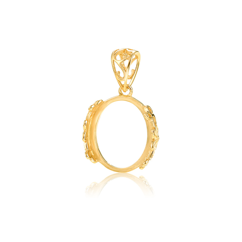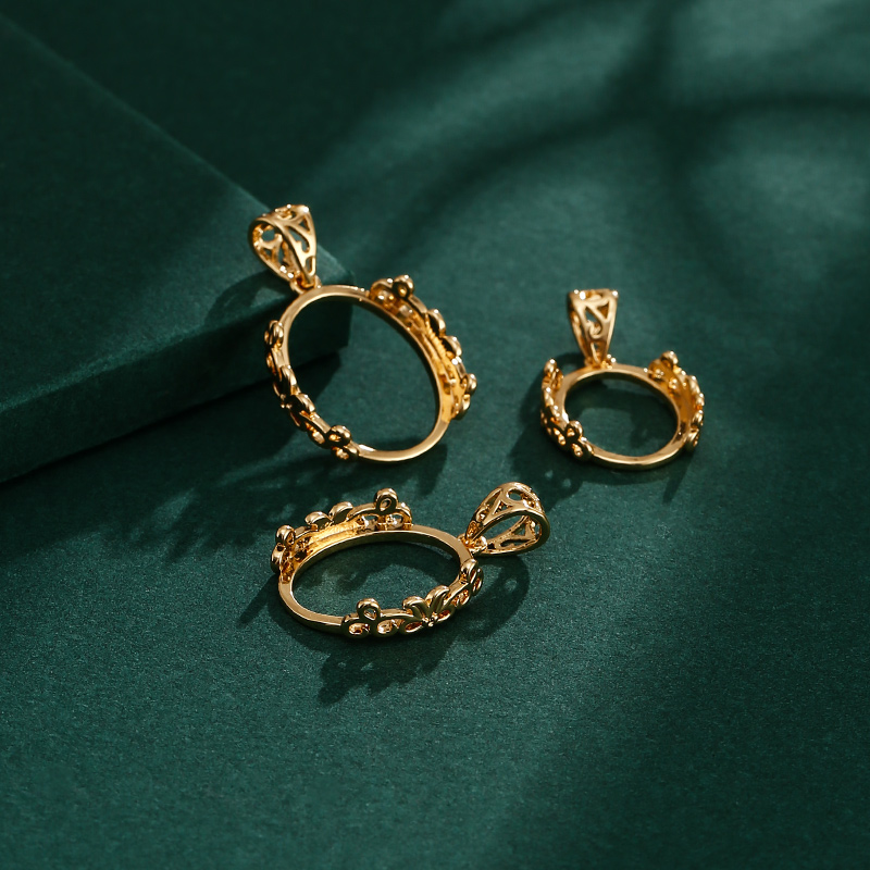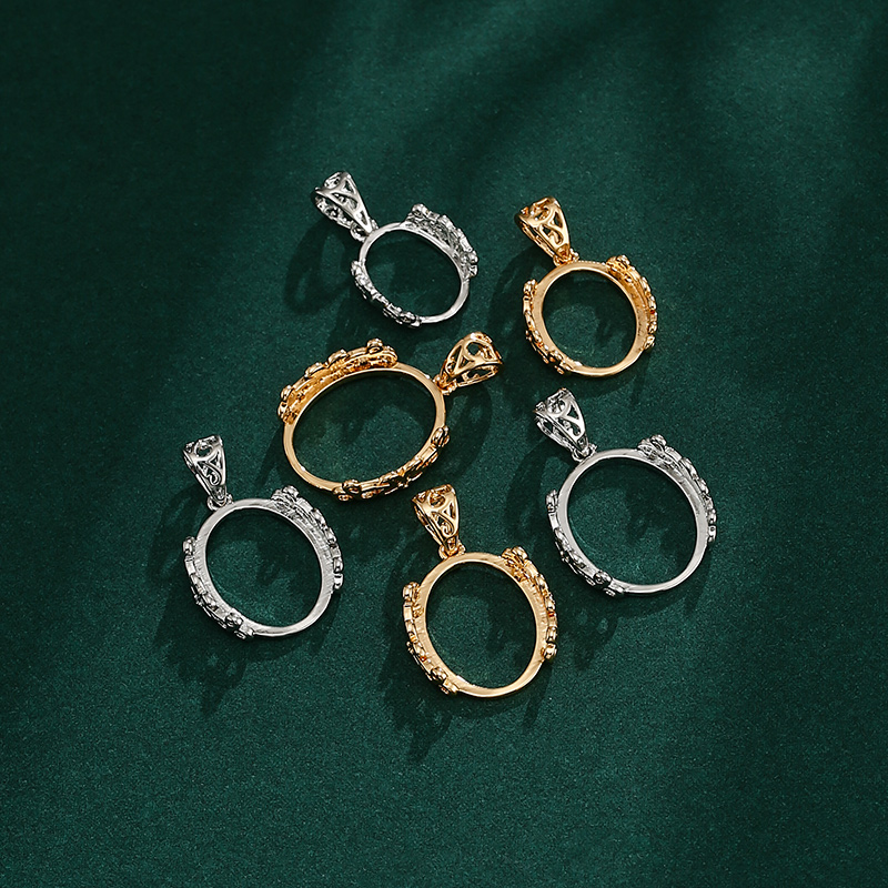 复古简易吊坠空托男女 18K金镶嵌蜜蜡翡翠绿松石椭圆形项坠托空托
