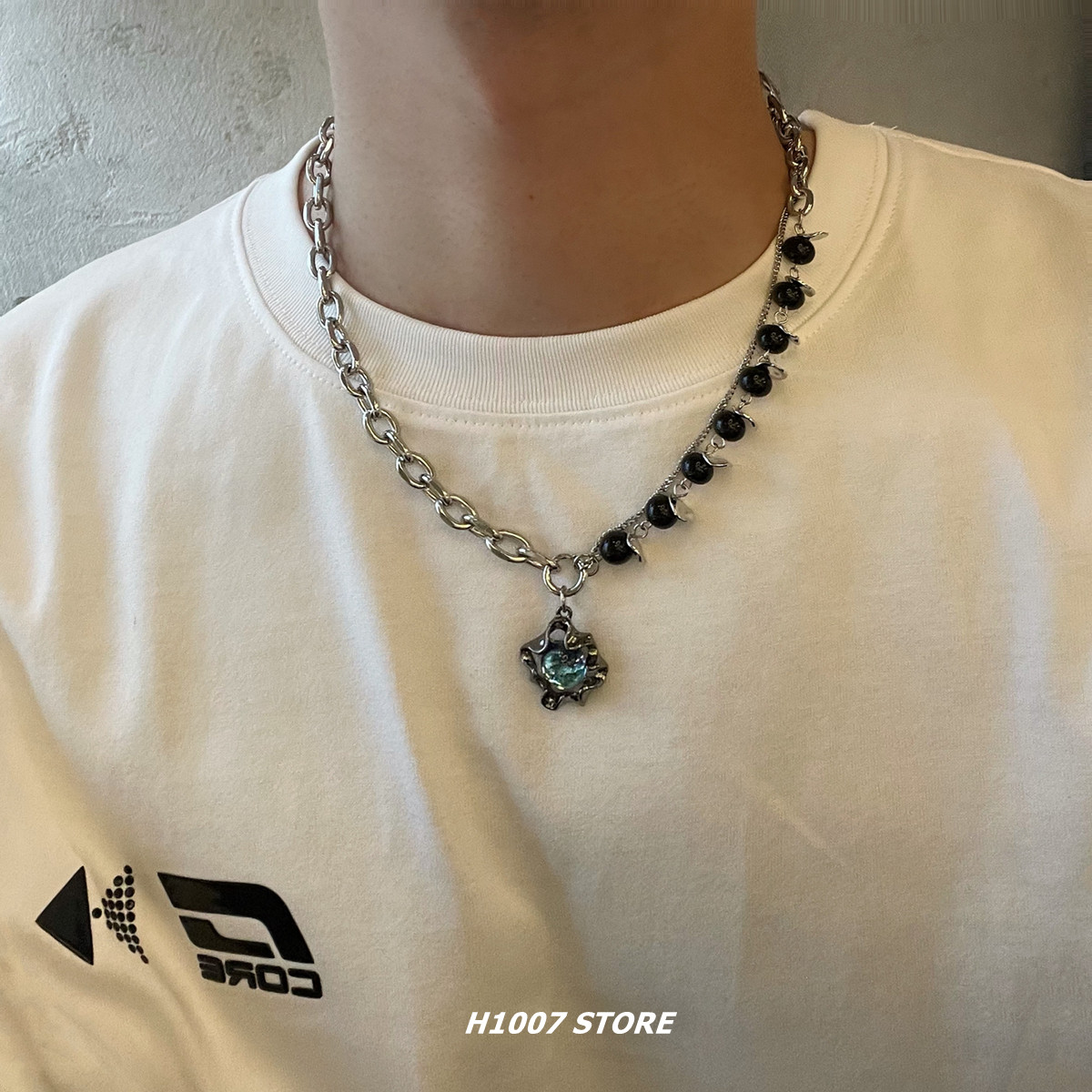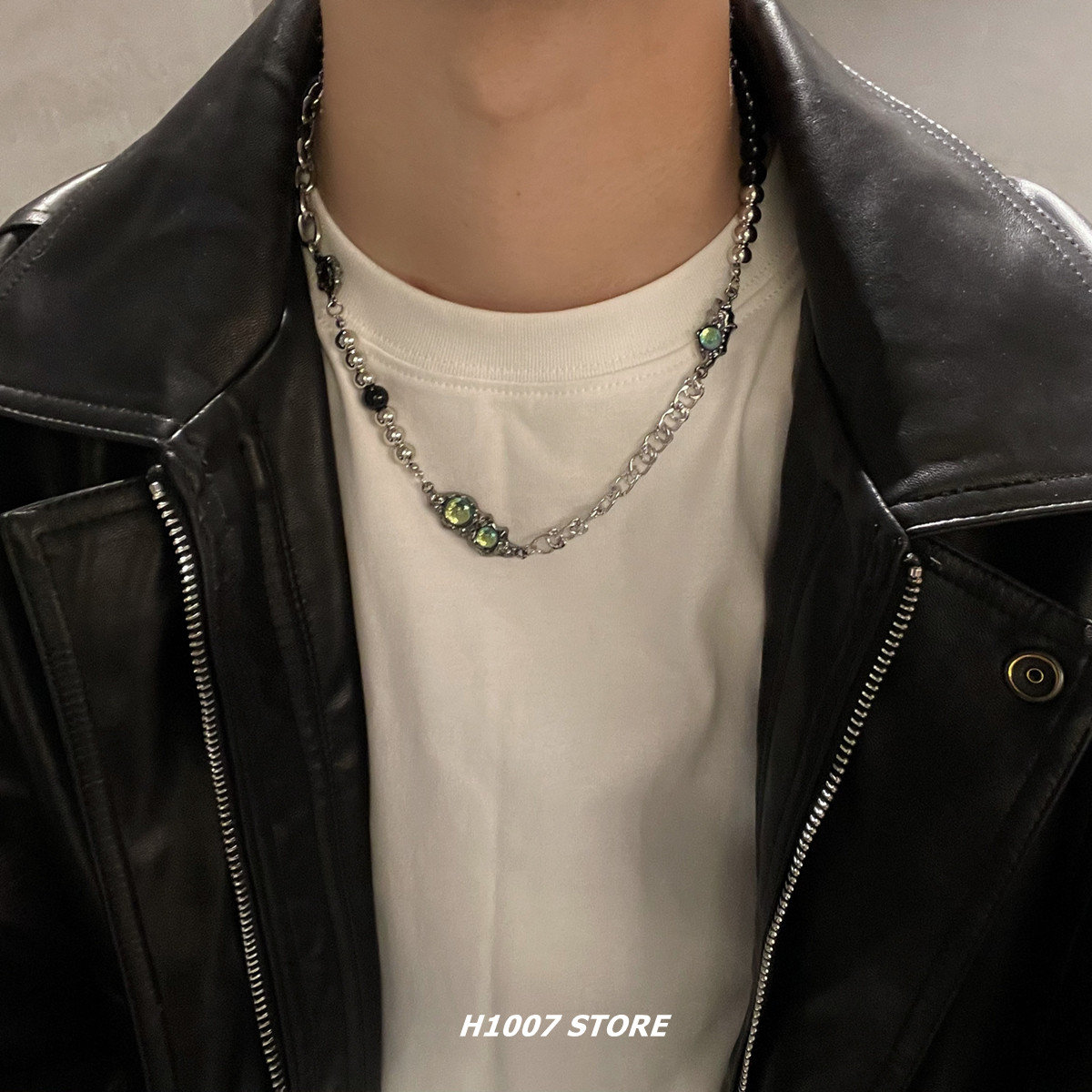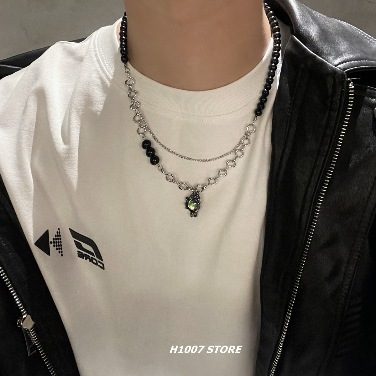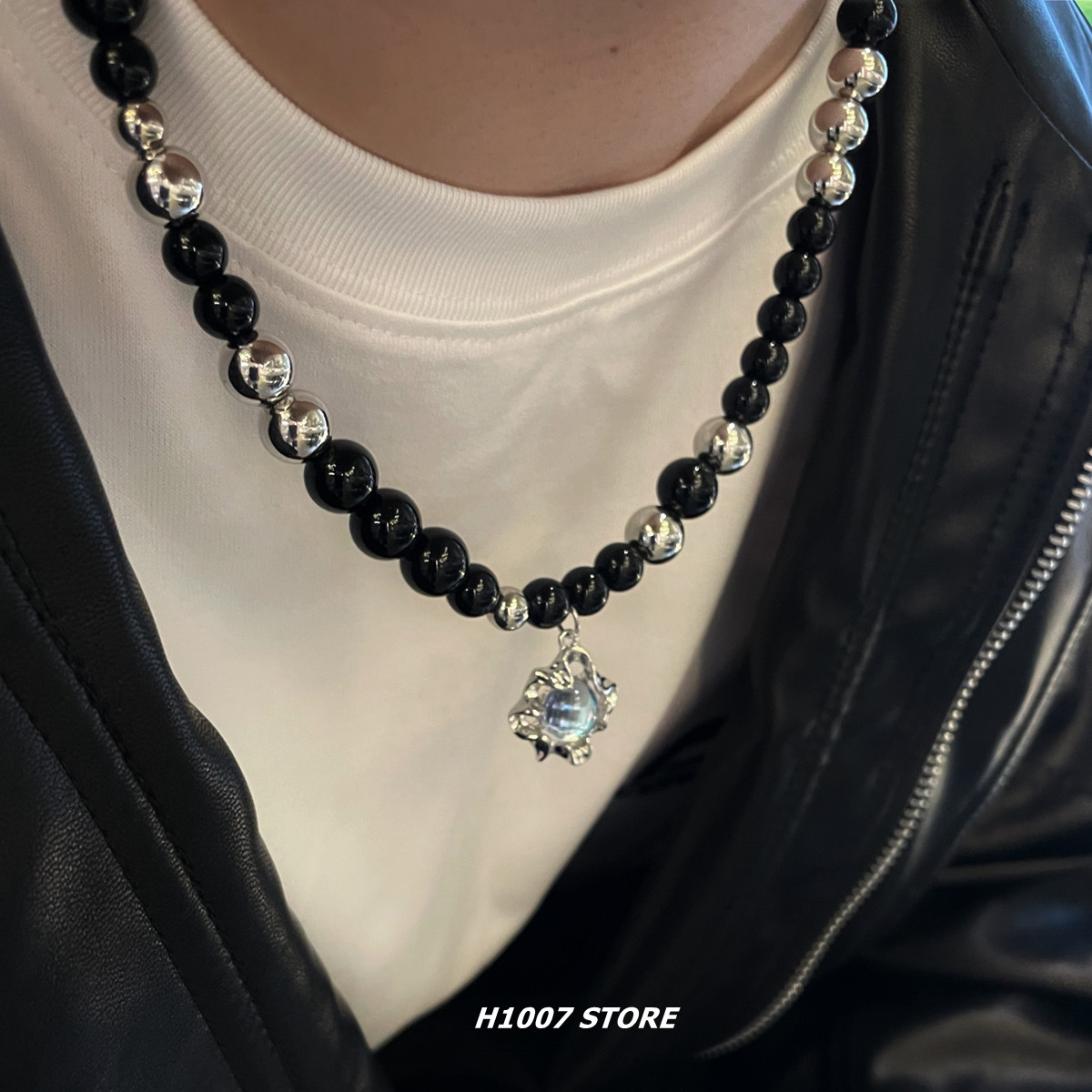 月光石拼接小众设计高级感男生项链黑色串珠钛钢链条甜酷锁骨链女