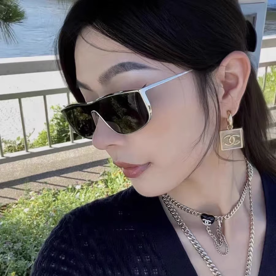 高级感夏季新款连体时髦太阳眼镜女防风护目镜未来感金属墨镜男潮
