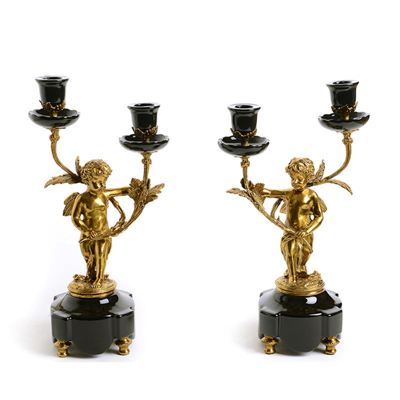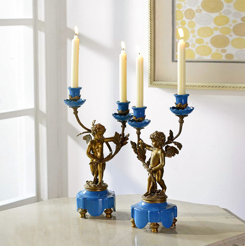 欧式全铜天使烛台装饰摆件高端家居陶瓷配铜餐桌烛光晚餐烛台摆设