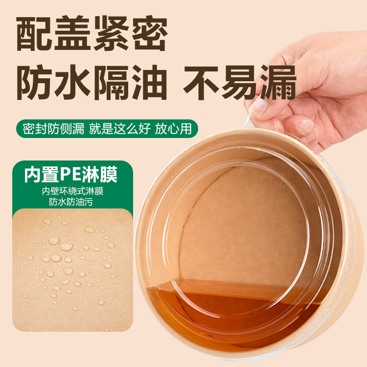 一次性牛皮纸碗打包盒圆形沙拉碗外卖餐盒环保纸饭盒水果盒野餐盒