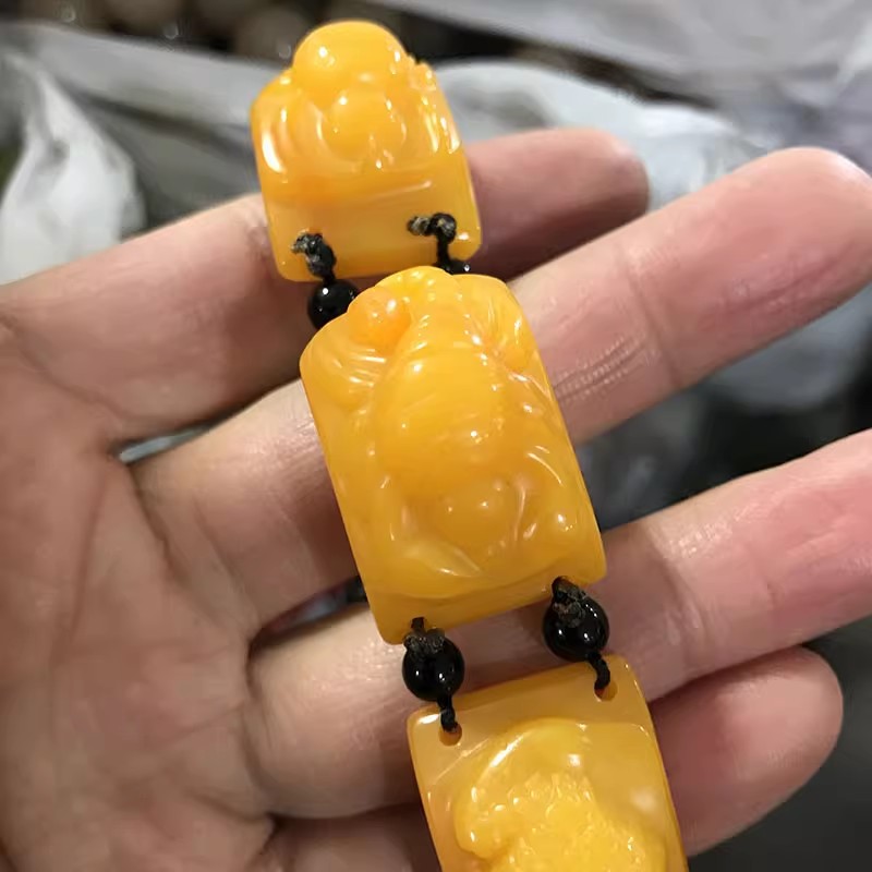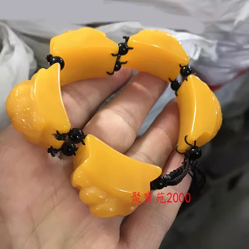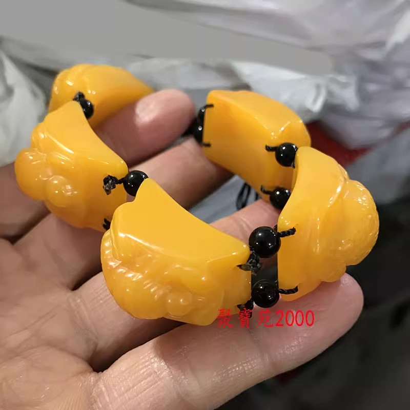 霸气黄龙玉手串玉石手饰文玩手排手牌男女款仿天然和田玉五毒手链