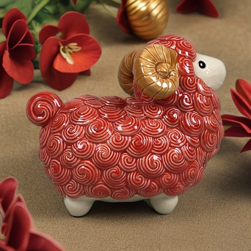 美陶 十二生肖羊 存钱罐陶瓷可爱精致小摆件石湾公仔客厅装饰摆设