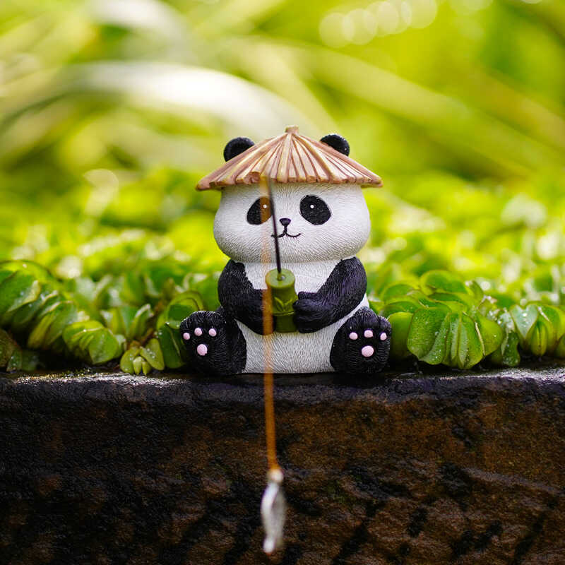 古法养鱼缸装饰熊猫钓鱼翁微景观水族流水器鱼池假山造景庭院摆件