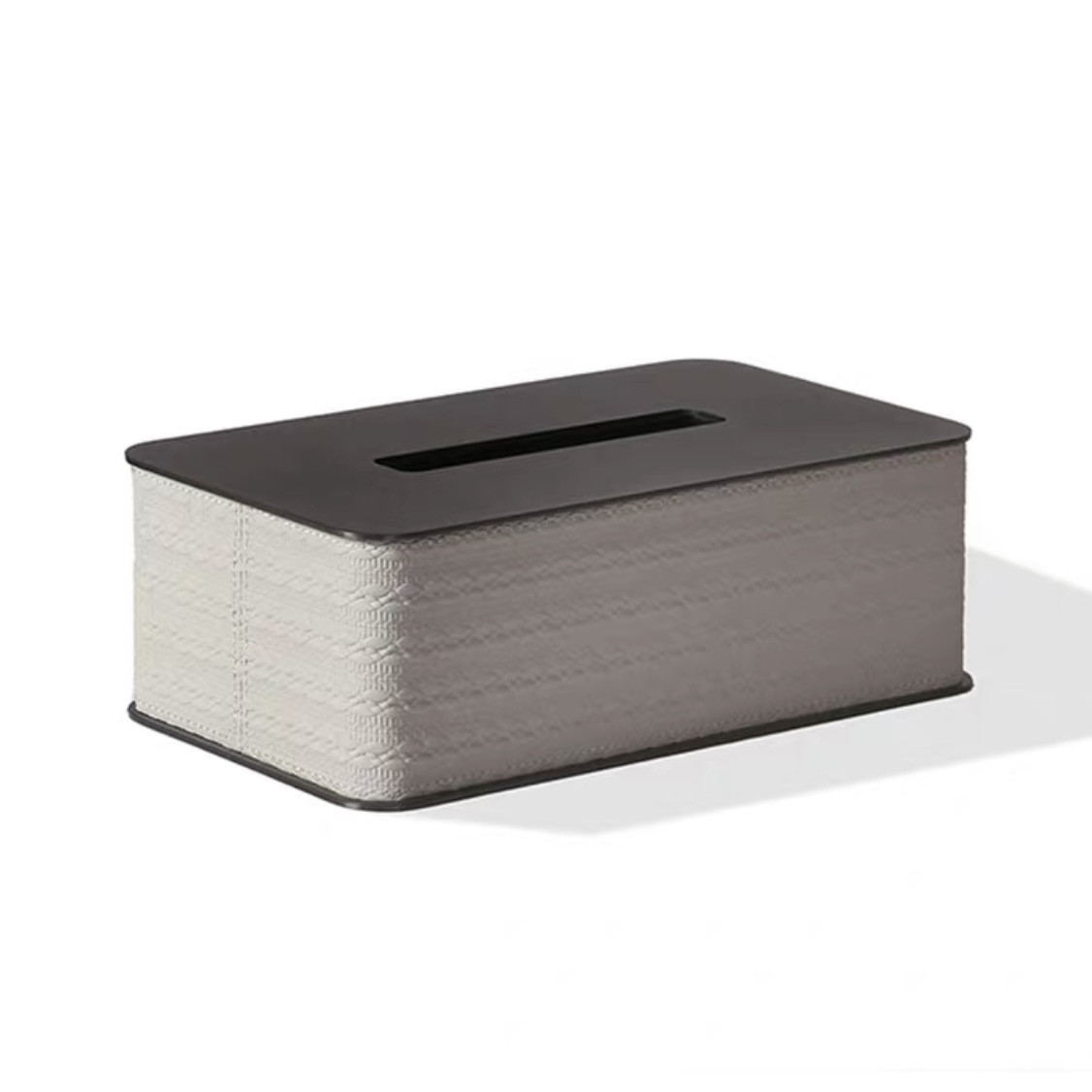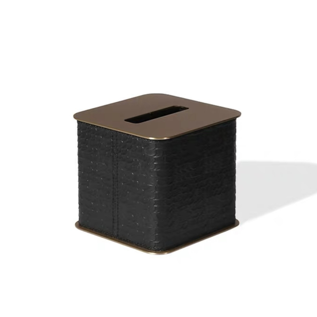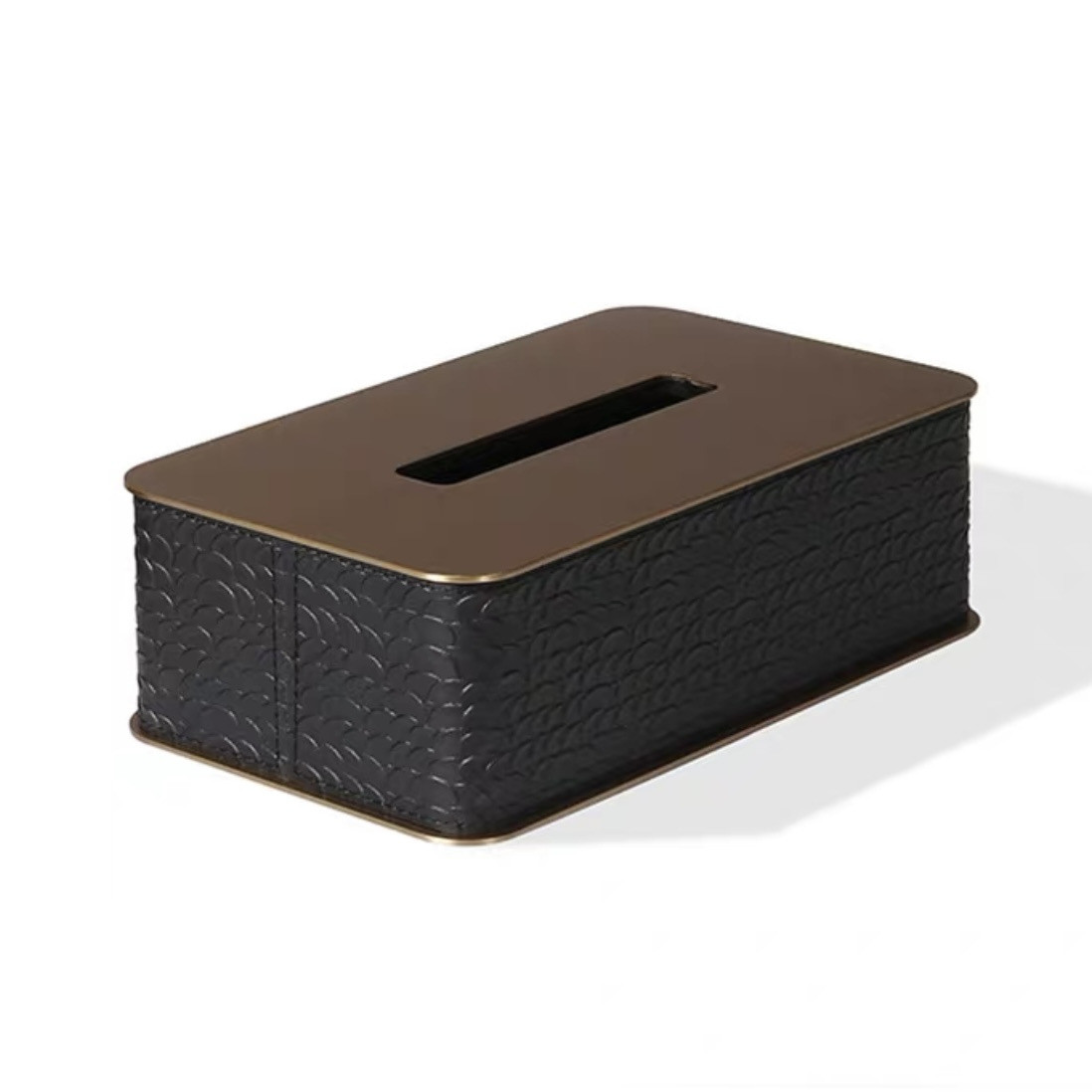 轻奢创意不锈钢木质编织皮革装饰品摆件家用客厅抽纸盒创意纸巾盒