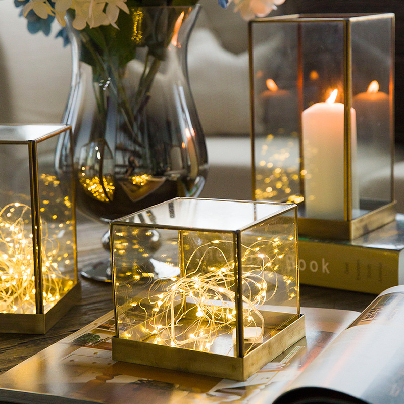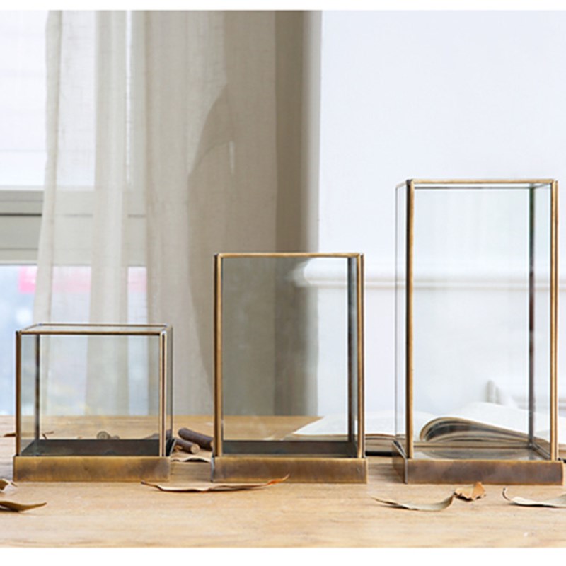 北欧景观玻璃罩几何透明摆件铜边套装 展示柜防尘罩样板房装饰