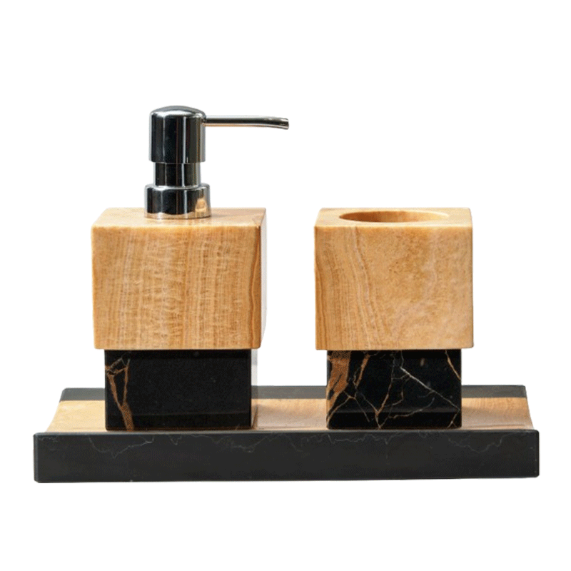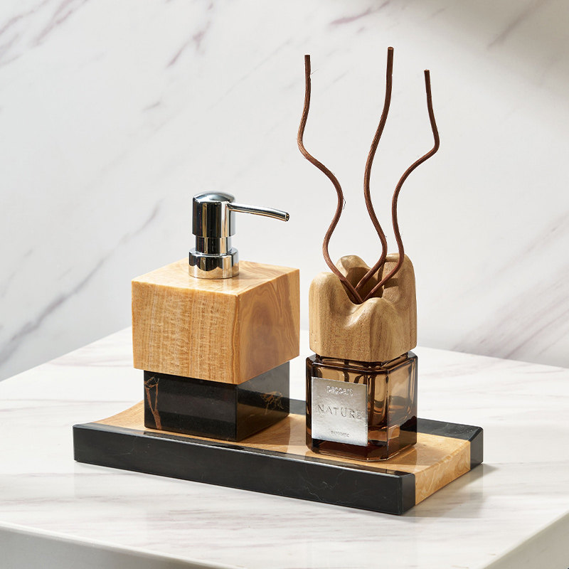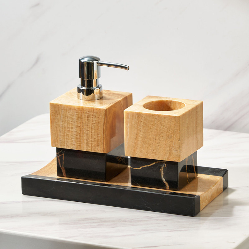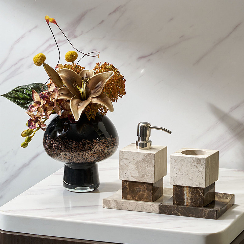 几何设计橙色系酒店卫生间卫浴洗手台装饰摆件大理石托盘洗漱套装