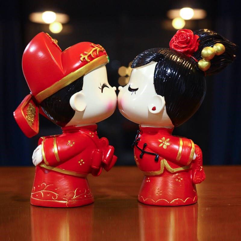 小摆件陶瓷娃娃公仔迷你人爱情树结婚喜庆玩偶吊脚浪漫情侣新婚房