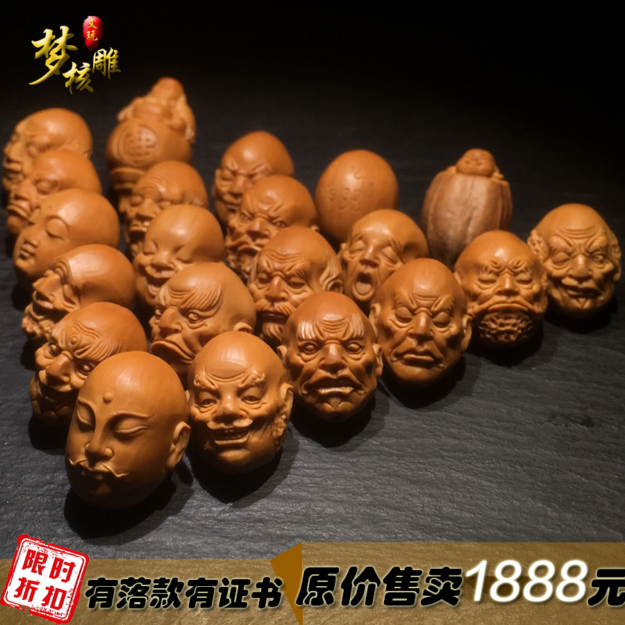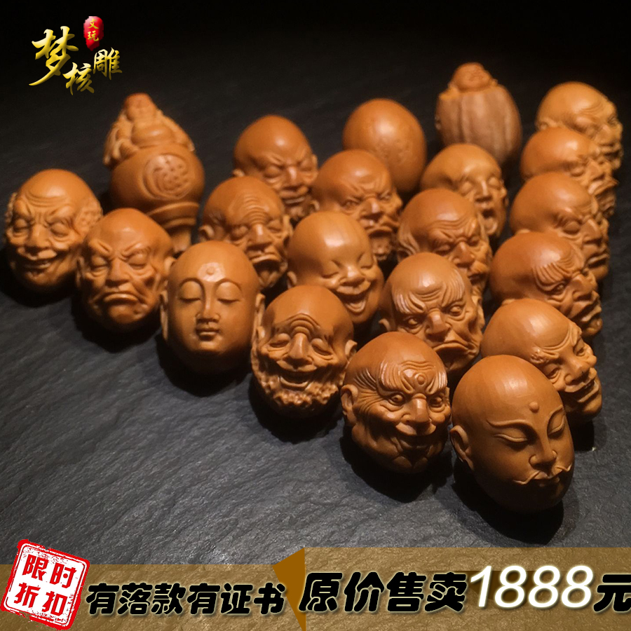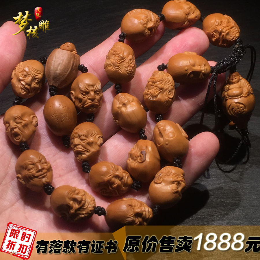 文玩橄榄核雕刻十八罗汉手链手串橄榄胡手工雕刻18罗汉项链送礼
