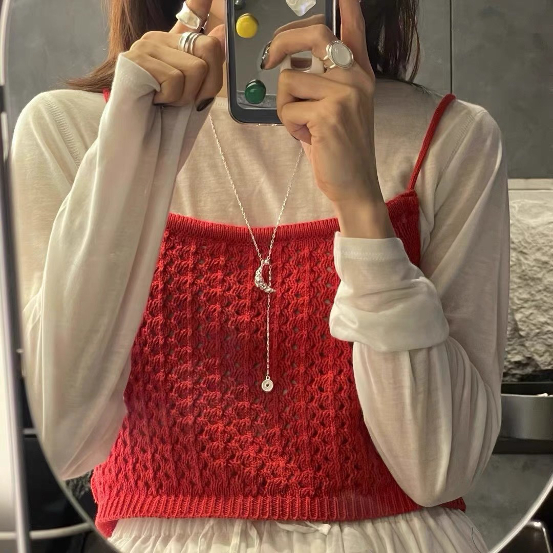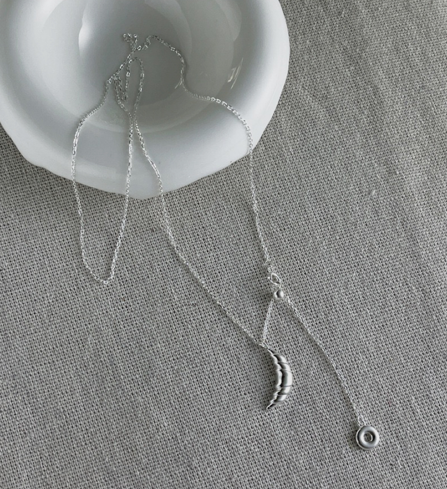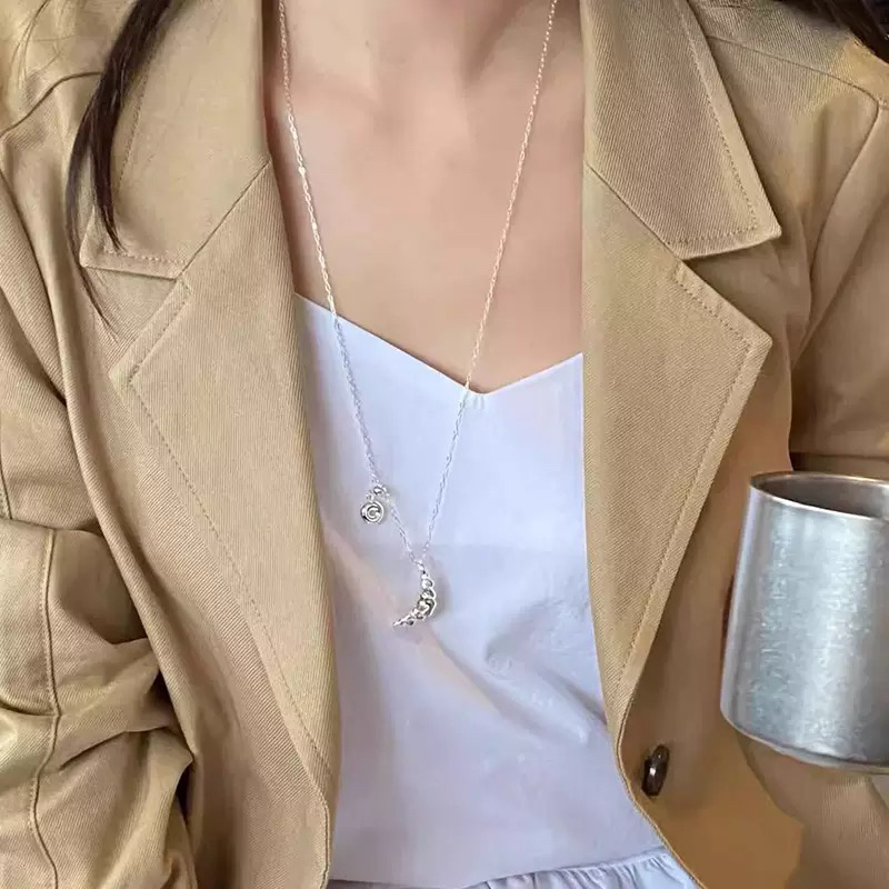 S925纯银韩版小众设计牛角包抽拉项链气质简约百搭长款毛衣链女