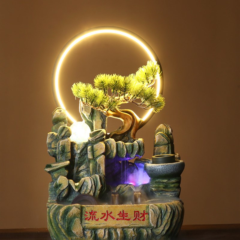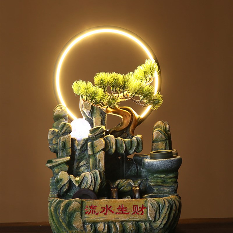 假山流水生财鱼缸循环喷泉办公室桌面创意装饰招财摆件开业送礼品