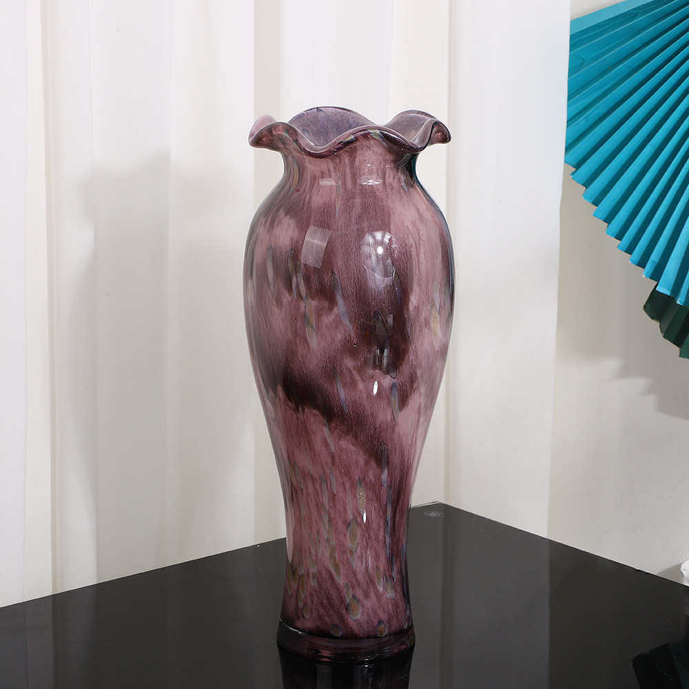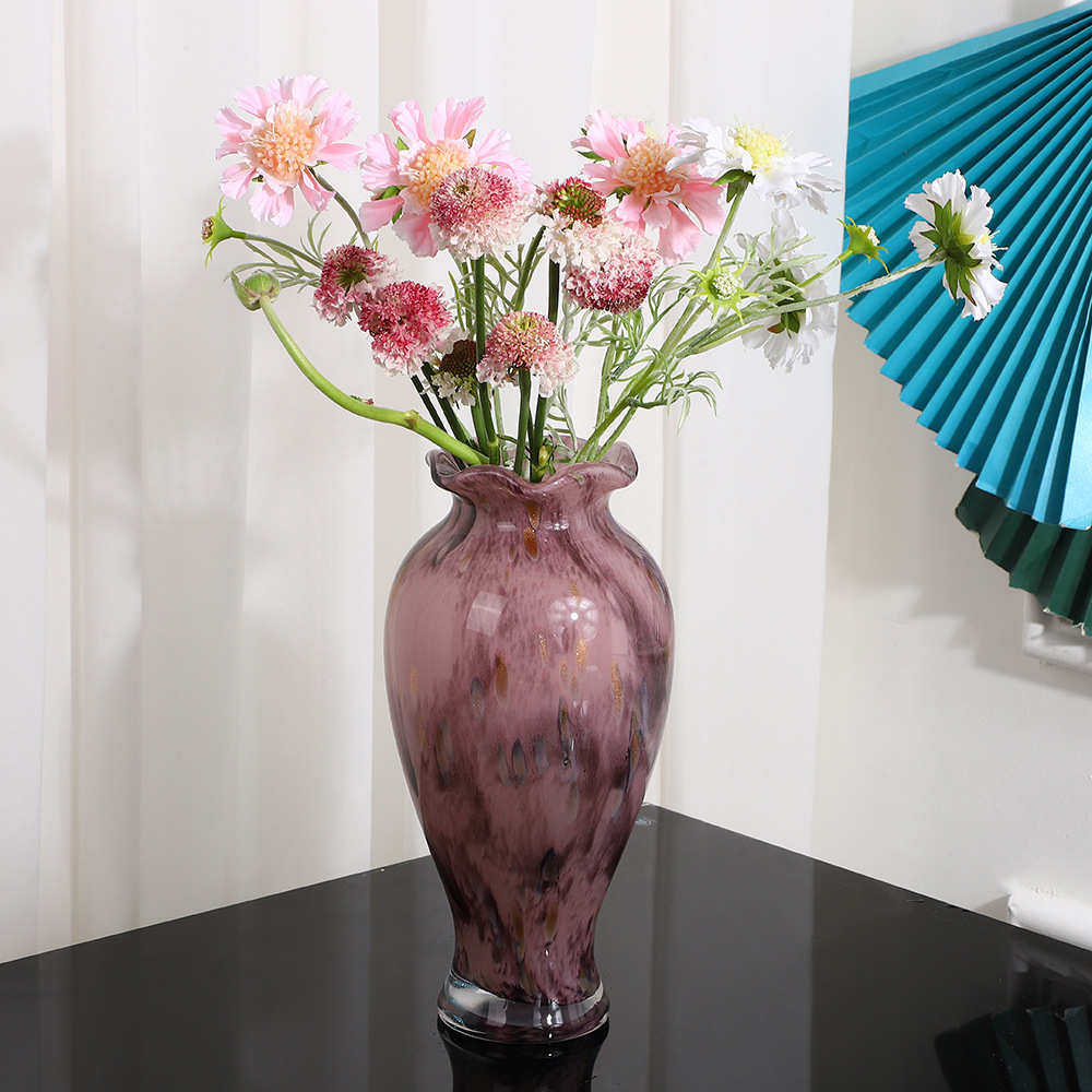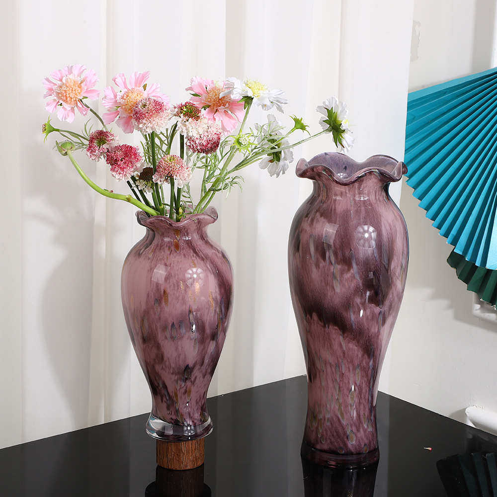复古紫色玻璃花瓶高级感小众中古花器装饰摆件客厅插花实用花瓶