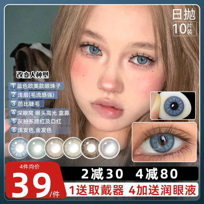 赛博混血蓝美瞳日抛10片冰种显色小直径大隐形眼镜正品官方旗舰店