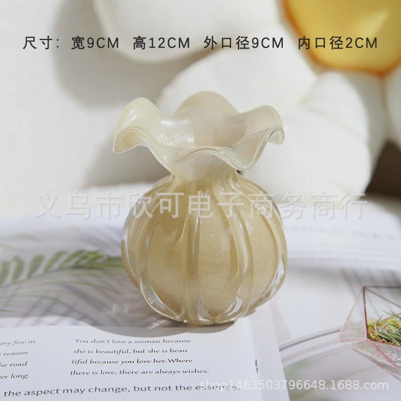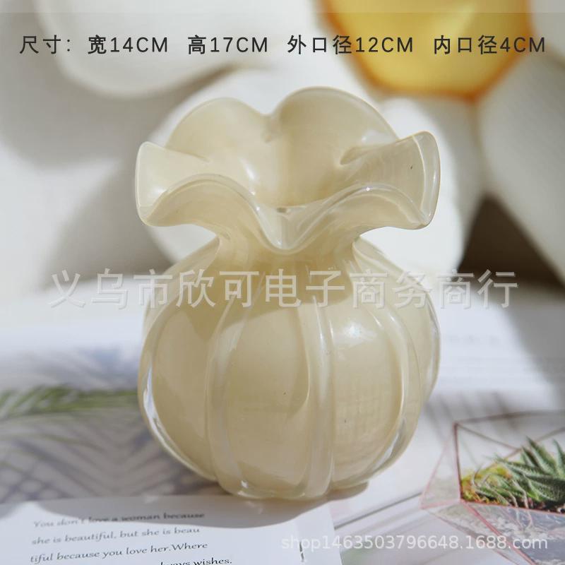 花器玻璃花瓶奶油黄色客厅插花摆件轻奢装饰高级感复古ins风中古