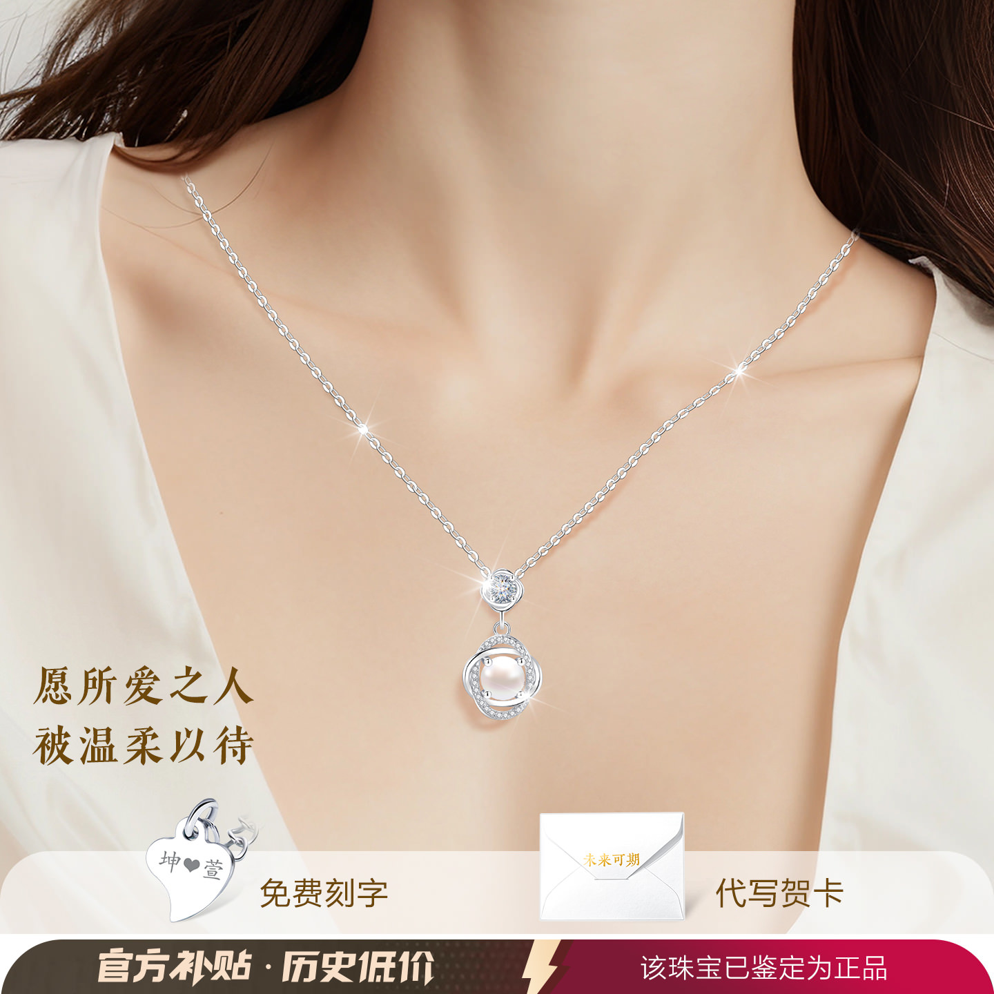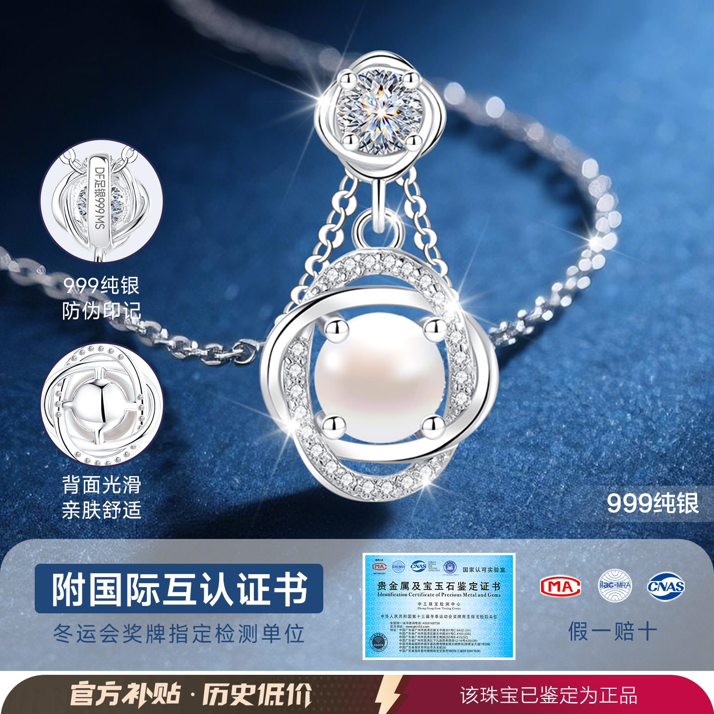玫瑰花银项链999纯银莫桑钻珍珠吊坠女款女士女送妈妈圣诞节礼物