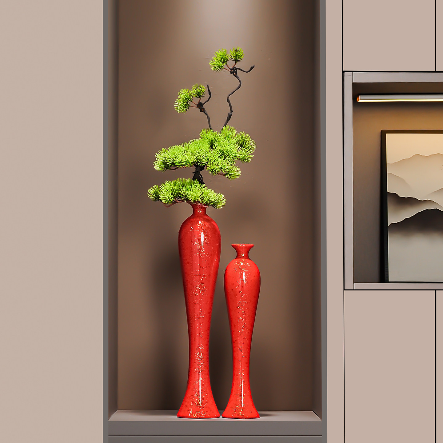 入户玄关进门插花花瓶摆件电视柜酒柜装饰品迎客松创意细长客厅高