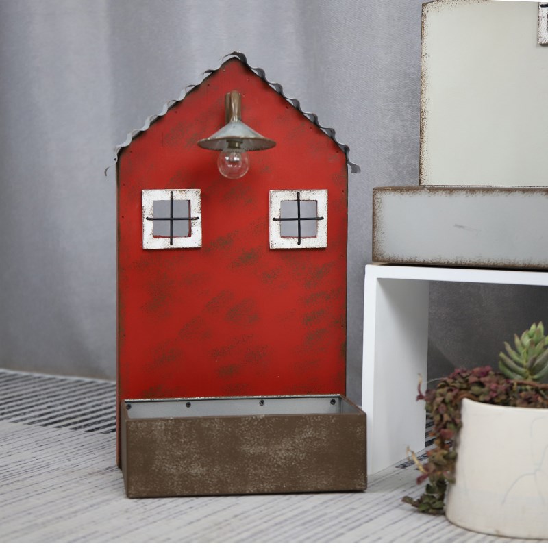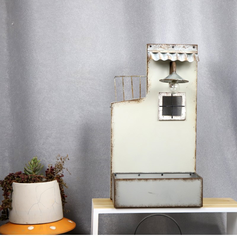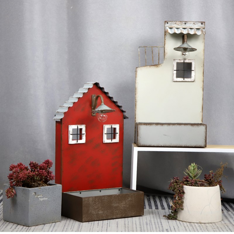 日式做旧小房子造型多肉花盆复古园艺带灯泡带孔盆栽W花园装饰摆