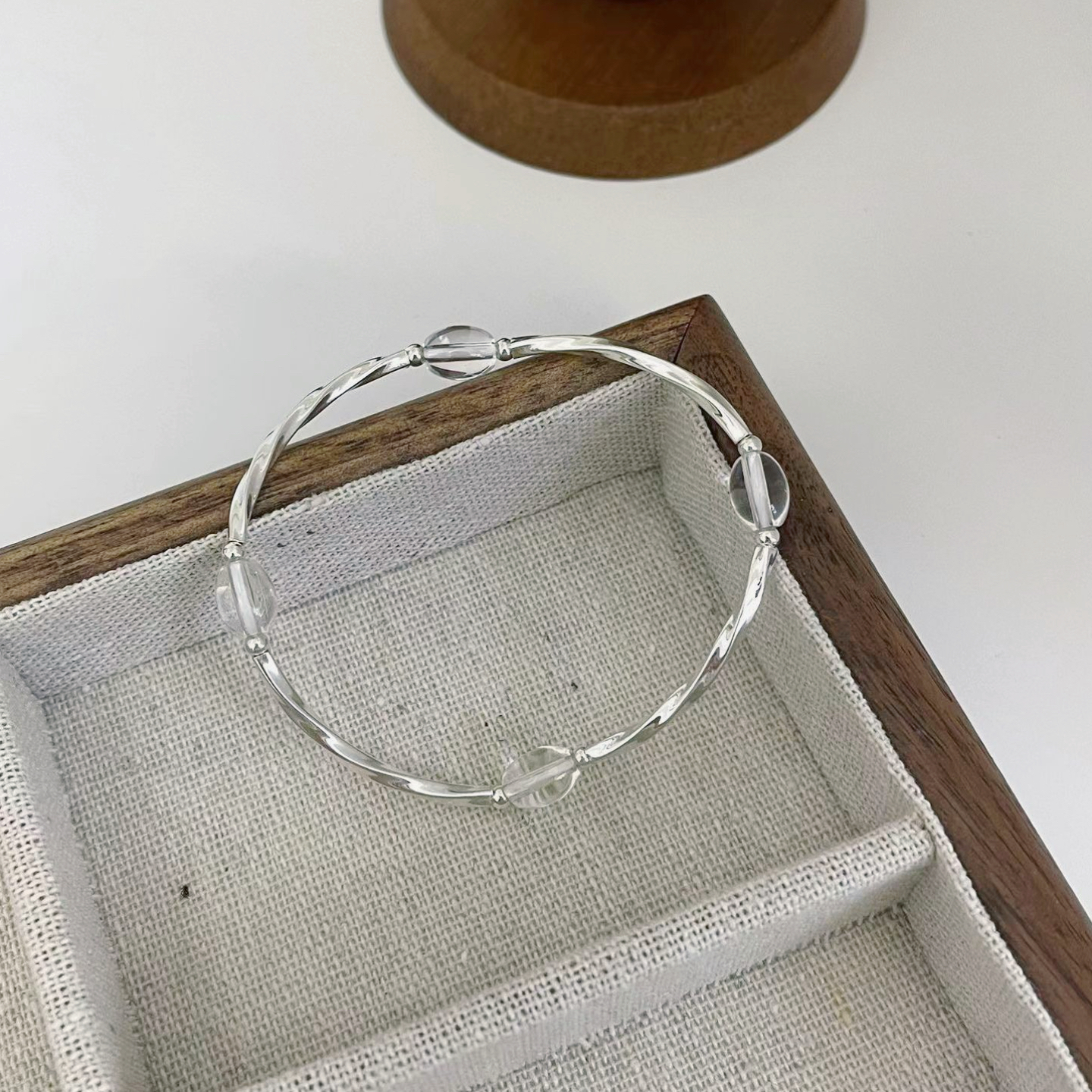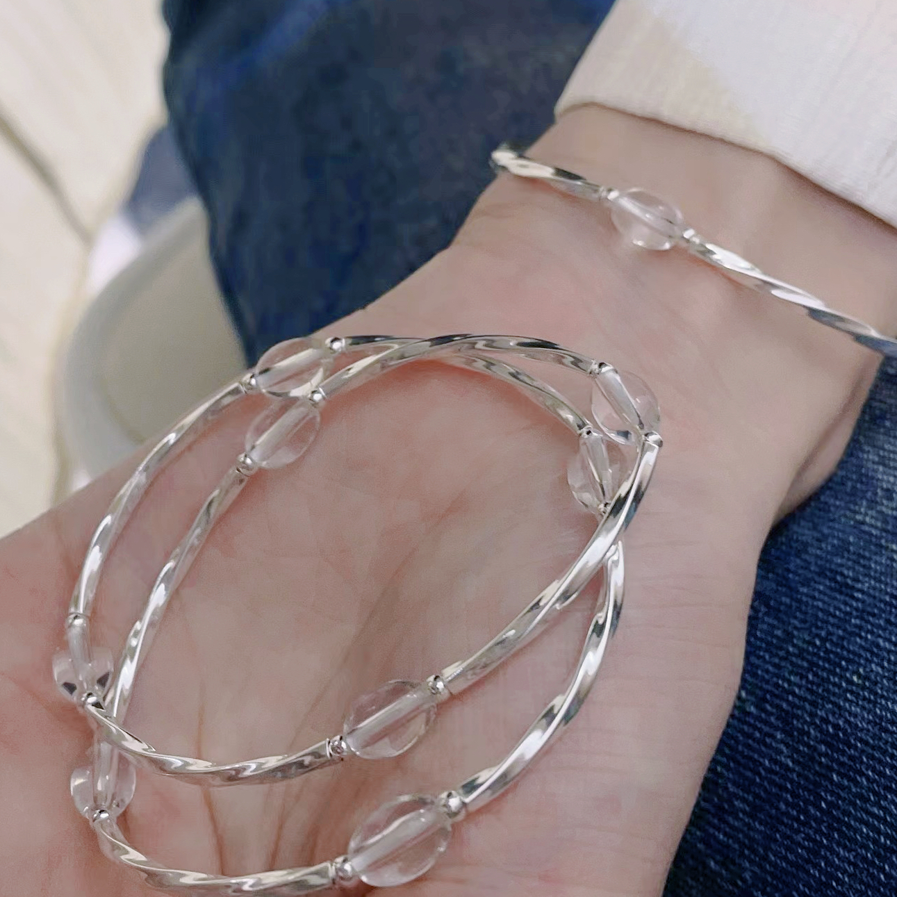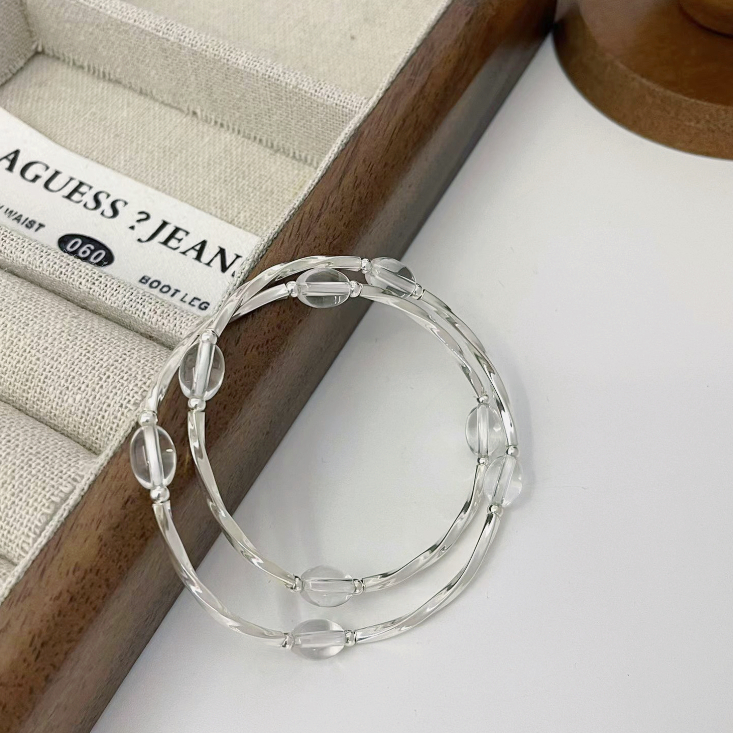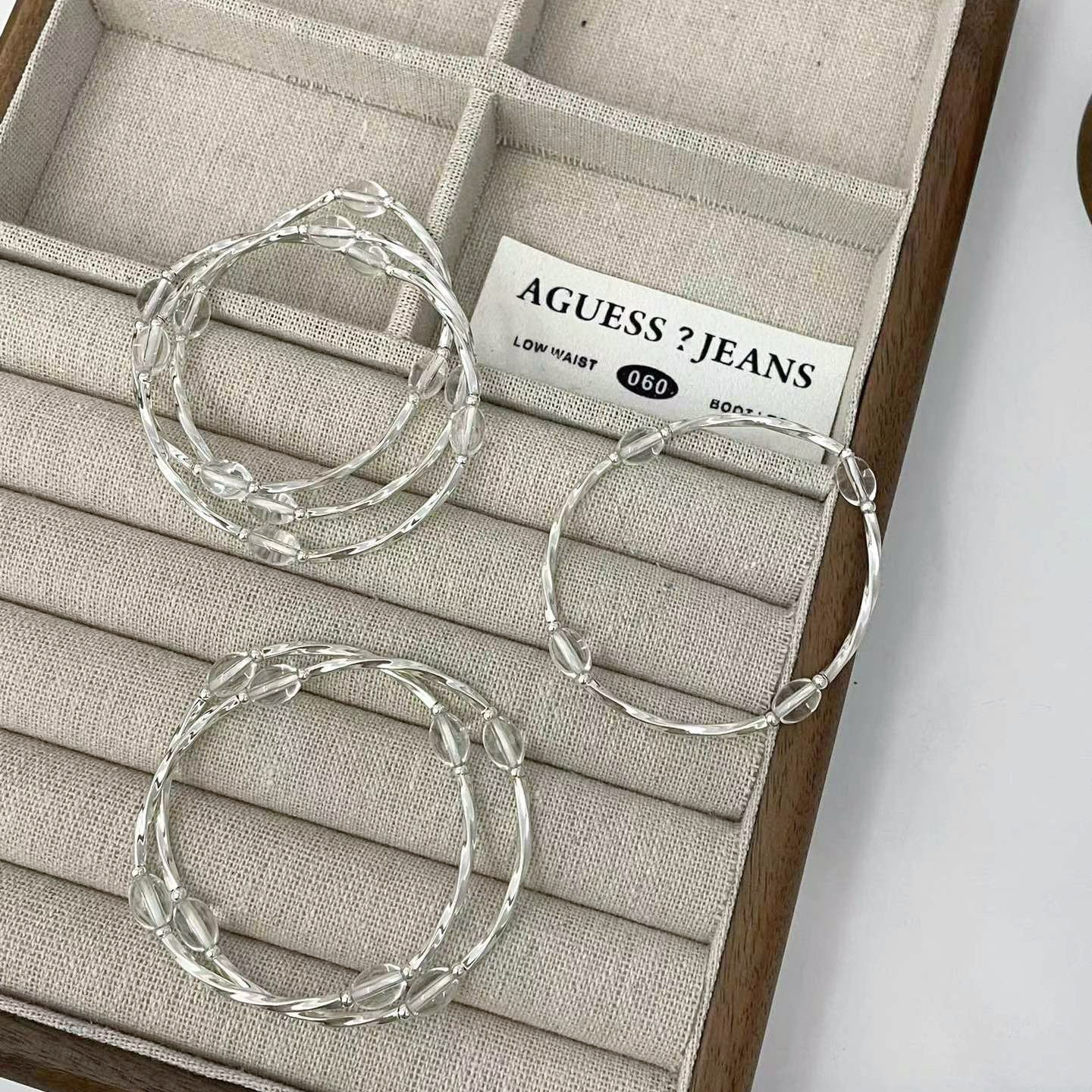 法式白水晶手镯纯银调节叠带多层扭纹轻奢手工小众设计高级感饰品