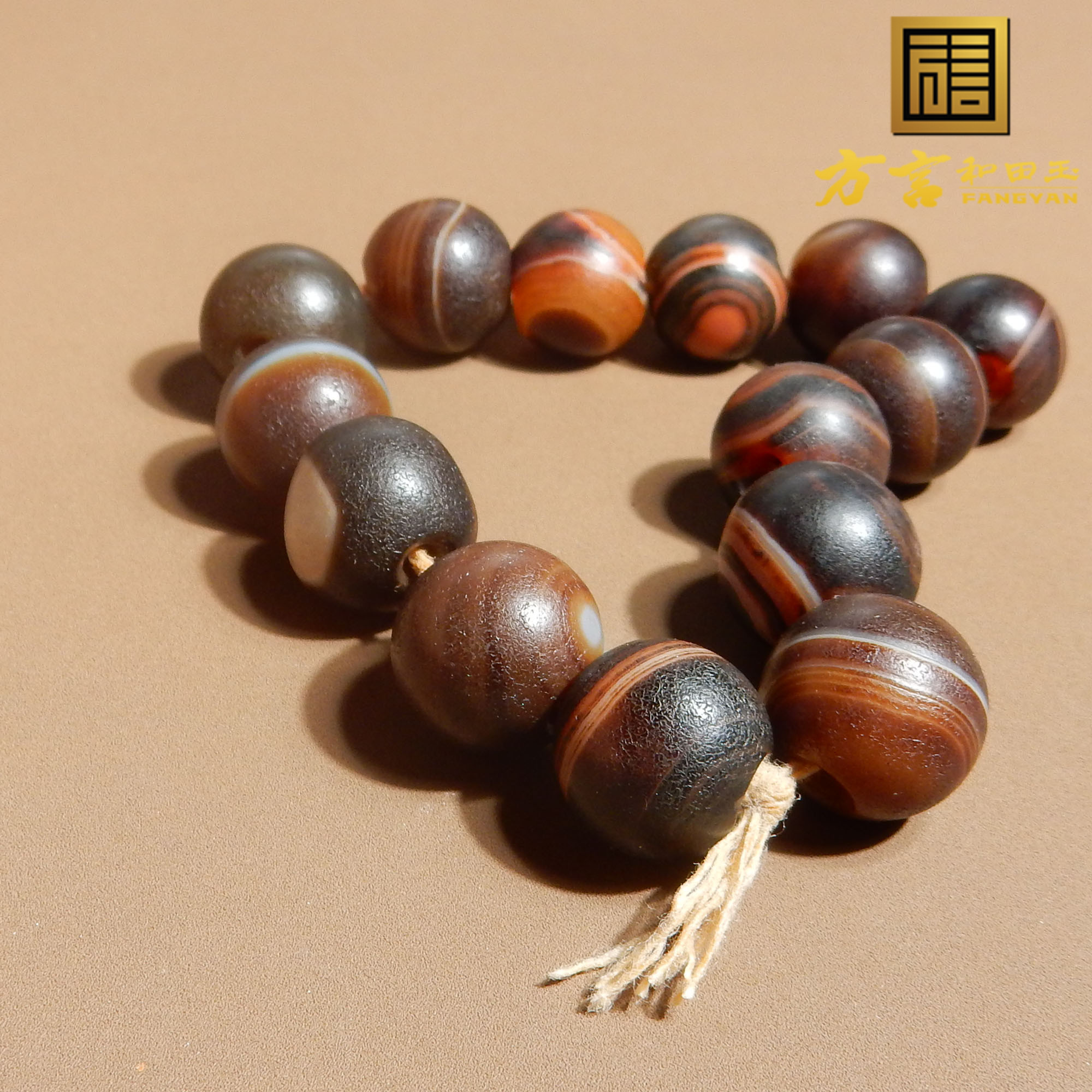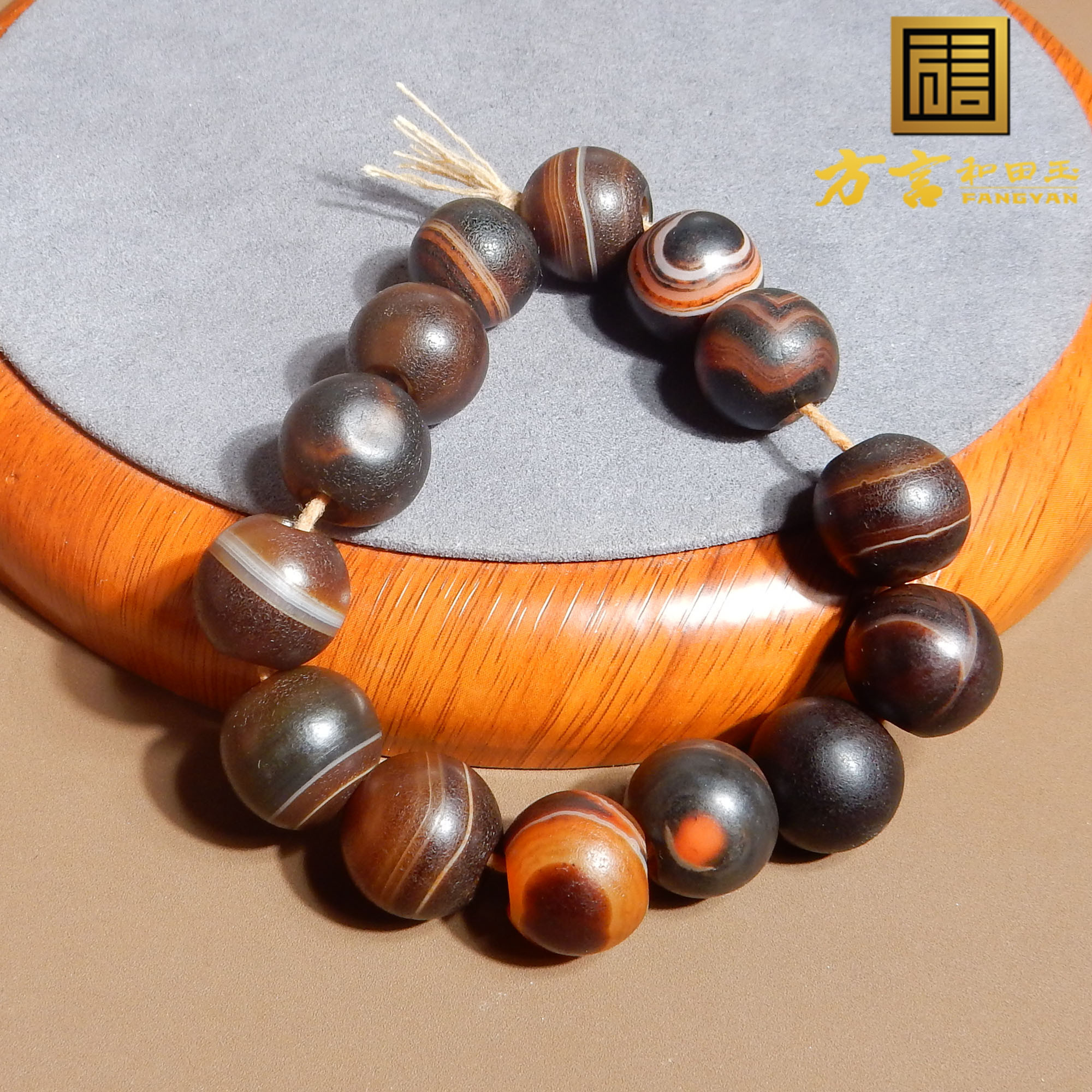 方言和田玉特色放漏藏传回流缠丝老玛瑙天眼珠圆型玛瑙手串手链X3